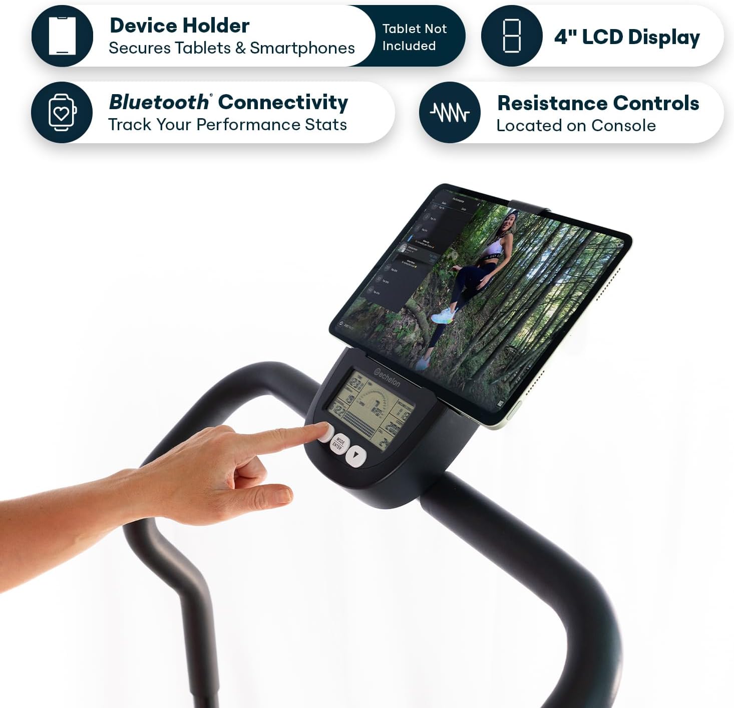 Transform your home workouts with the Echelon Stair Climber Max, a compact yet powerful stair-stepper designed for maximum results. Featuring 32 digital magnetic resistance levels, this machine allows you to adjust intensity for beginners through advanced users, perfect for cardio, fat-burning, HIIT, and endurance workouts.The 4-inch LCD display tracks steps, time, calories, and progress, while Bluetooth connectivity syncs with the Echelon Fit App for guided workouts, scenic runs, and performance tracking. Foam-covered, adjustable handlebars provide a comfortable grip and targeted muscle engagement, while quiet operation ensures a smooth, distraction-free workout. With dimensions of 38.38" × 22" × 55" and folding down to just 11" tall, this stair climber is ideal for small spaces, featuring built-in transport wheels for easy storage and portability. The machine supports up to 300 lbs and includes three manual incline levels for versatile, high-intensity workouts.The Echelon Stair Climber Max combines durability, compact design, and smart connectivity to deliver an effective, interactive, and convenient home cardio solution. Elevate your fitness routine with this versatile stepper designed for any home gym setup.Features:32 Digital Magnetic Resistance Levels for Adjustable Intensity4” LCD Display with Time, Steps, Calories, and Bluetooth ConnectivityAdjustable Foam Handlebars for Comfort and Targeted Muscle TrainingFoldable Design with Built-In Transport Wheels for Easy StorageSupports Up to 300 lbs with Quiet Poly V Belt DriveCompact Footprint: 38.38” × 22” × 55” Assembled, 11” FoldedThree Manual Incline Levels for Versatile Home Workouts