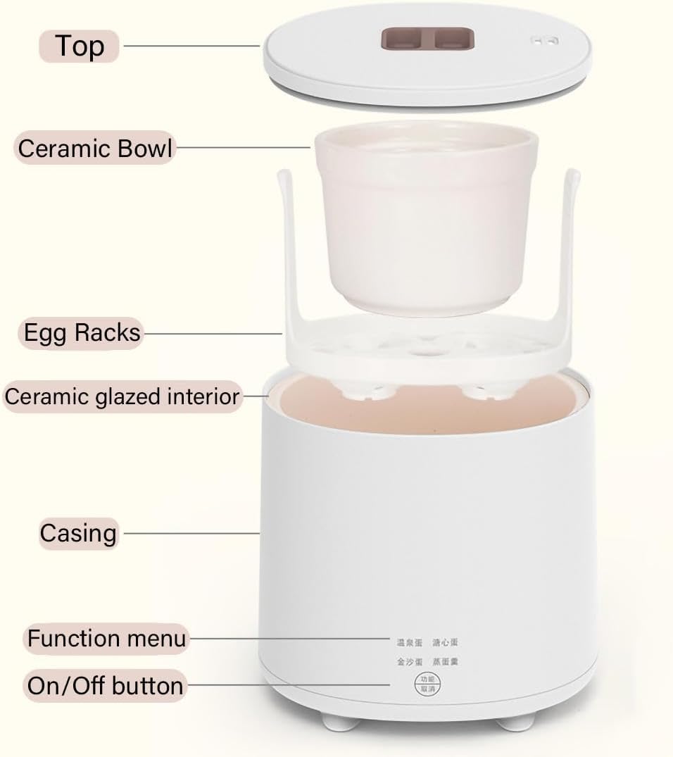 Features: egg cooker for microwave with automatic power-off function, you can easily cook cooked tender and controllable fancy taste, simple and convenient operation, exquisite and practical design.Brand:KALWELProduct Name: egg cookerMaterial: stainless steel + PPColor: whiteSize: 5.8 "L X 5 "W X 5.6 "HVoltage: 110VProduct weight: 1kgCapacity: 4 eggsPacking list: 1* egg cookerApplication: eggs, corn, sweet potatoes, pumpkin, eggs, etc.Note: 1. This size is measured manually, error is inevitable. The actual receipt of the physical object shall prevail.2. This product is photographed in kind. Due to light, angle, monitor and other objective reasons cause color difference. Please refer to the actual receipt of the object shall prevail.