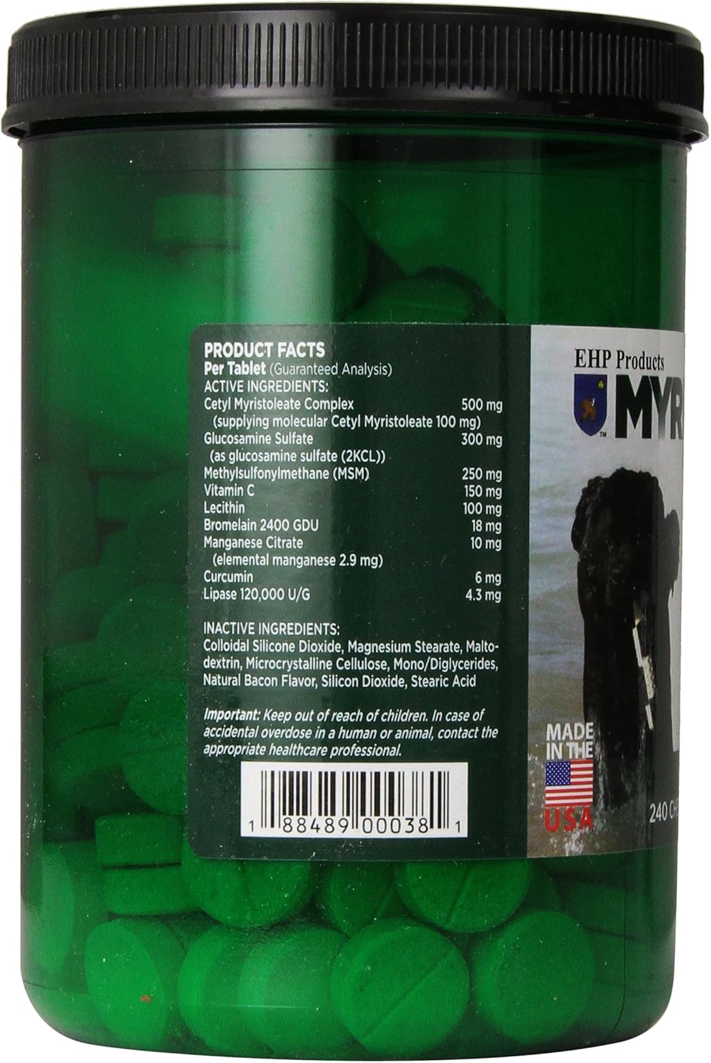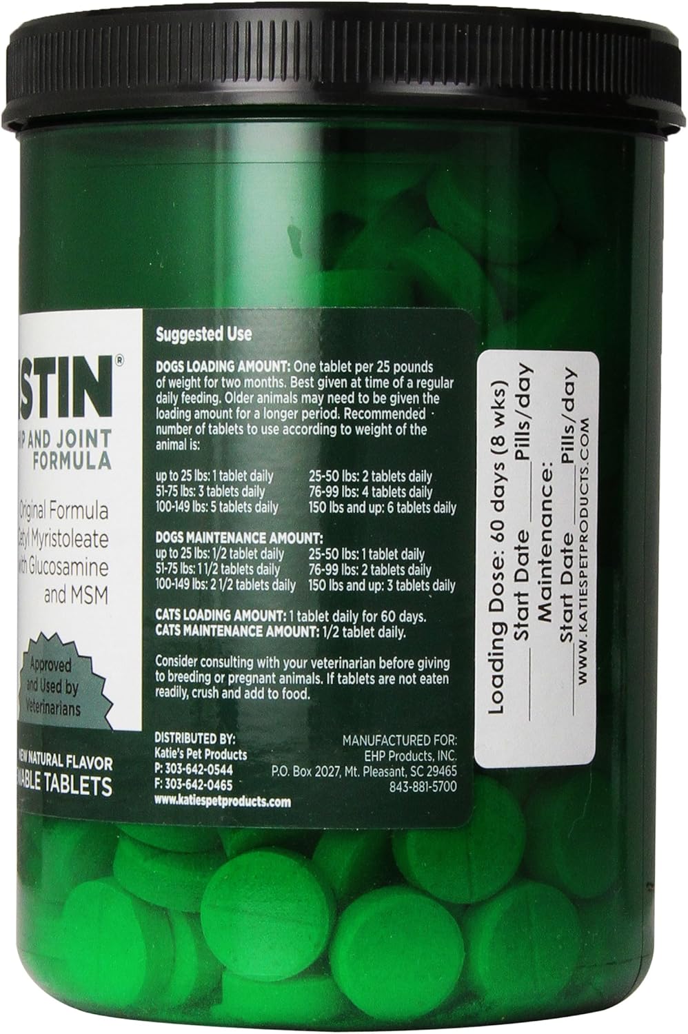 Myristin Special Canine Joint Formula combines Cetyl Myristoleate and Glucosamine Sulfate along with other natural ingredients to prevent the onset of joint problems and restore flexibility to stiffened joints. Helps reduce joint pain and inflammation and repair damaged joints. Chewable tablet is scored for easy administration and has a rich natural flavor dogs love. Approved for use with cats too. Myristin Special Canine Joint Formula is a natural nutritional supplement. A combination of Cetyl Myristoleate and Glucosamine Sulfate work together and with other joint nutrients to create optimum joint health. Myristin Canine Formula is used to repair and reduce dysplasia and other joint problems.