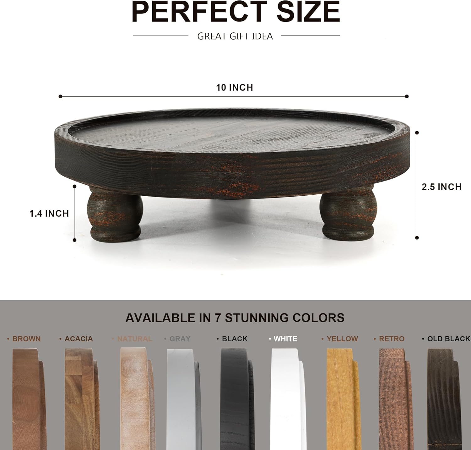 Bring instant farmhouse charm and organization to any space with the EOSAHR Pine Wood Farmhouse Display Riser in a distressed black finish. Designed as a rustic style wood pedestal stand, this round decorative riser adds height, dimension, and a curated look to your everyday essentials—without taking up much space. Place it on your bathroom vanity to create a clean perfume and skincare station, use it on the kitchen counter to elevate soap and sink accessories, or style it on a coffee table with candles, greenery, and seasonal decor for a warm, inviting centerpiece. Made from solid pine wood, this farmhouse decorative riser offers dependable stability and a smooth, well-finished surface that feels polished and is easy to maintain. Measuring 10 x 10 inches, it’s a versatile size for layering decor on shelves and dressers, and it can even double as a serving stand for cupcakes and small treats when hosting. With a simple, ready-to-use design, setup is effortless—just unpack and place. Practical, stylish, and giftable, it’s a beautiful addition to any home and a thoughtful present for housewarmings, weddings, and holidays.