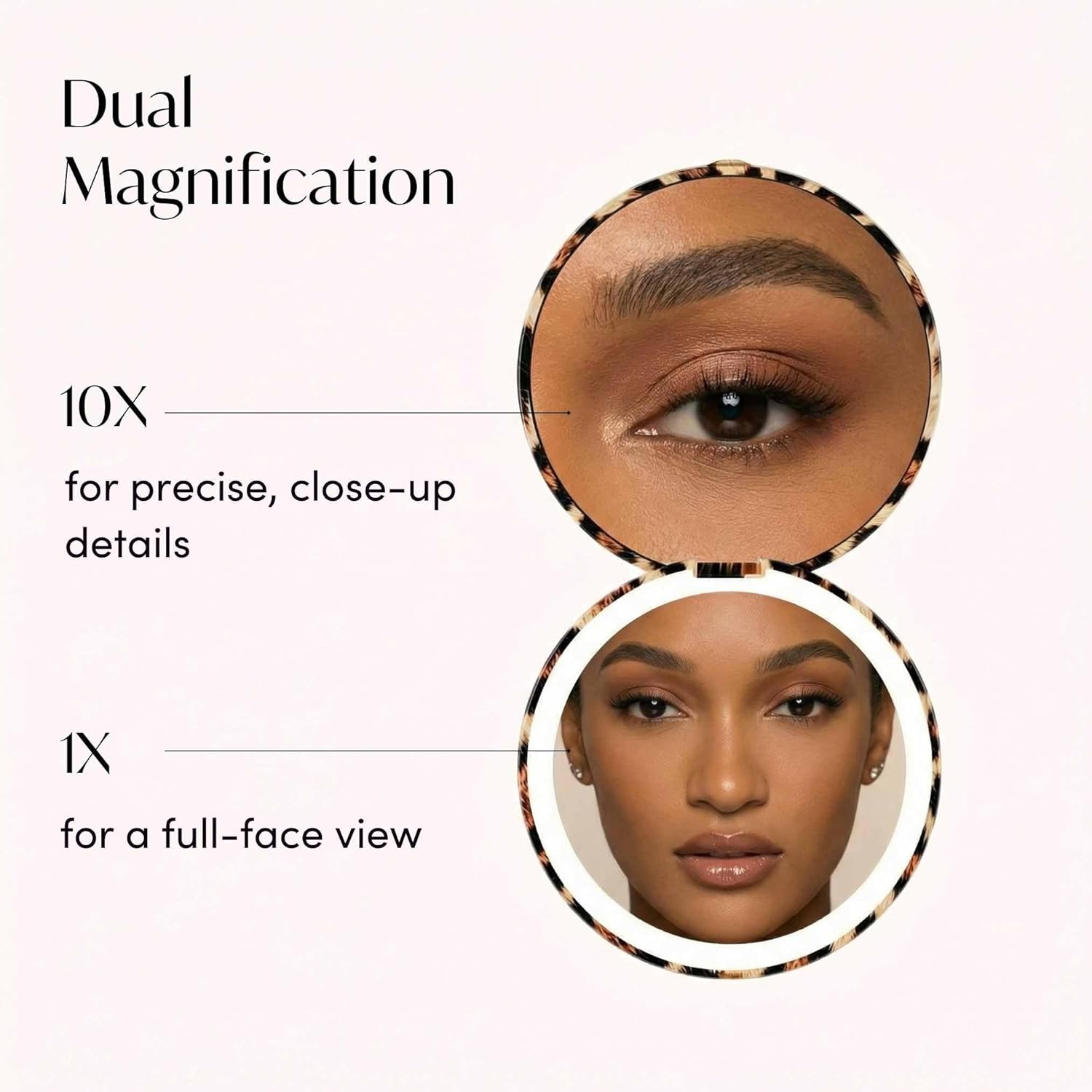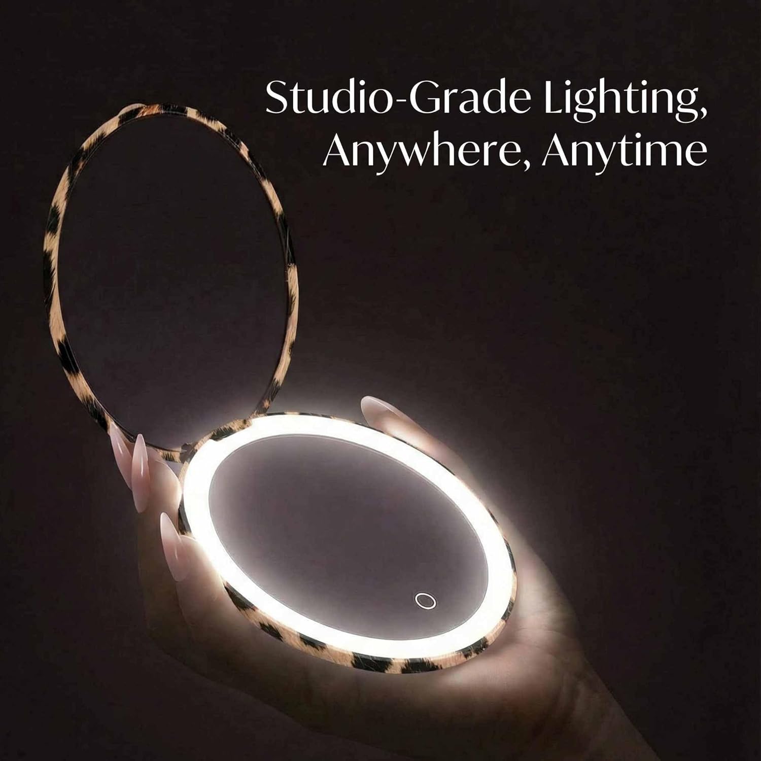 Introducing the Mini Taylor Compact Mirror, your go-to for flawless touch-ups wherever you are. Designed with portability in mind, its 4-inch size fits perfectly in your purse, offering a premium, distortion-free reflection, easy to hold with one hand. Choose from three dimmable light settings—warm, neutral, and natural daylight—for color-accurate makeup application anytime, anywhere. The Mini Taylor’s dual magnification features 1x for full-face views and 10x for detailed precision tasks like tweezing or applying eyeliner. Powered by rechargeable batteries, the Mini Taylor lasts up to 30 days on a full charge, reducing waste and eliminating the need for disposable batteries. It’s an eco-friendly choice that keeps you ready for on-the-go touch-ups. With professional-grade LEDs designed to last up to 50,000 hours, and ultra-clear, distortion-free glass, the Mini Taylor ensures perfect lighting and crystal-clear reflection for years to come. Highlights: 3 Light Settings 10 LED Light Bulbs 10X / 1X Magnification Folding Design Rechargeable Batteries 101mm Premium Glass Auto Power On/Off Lightweight and Stylish