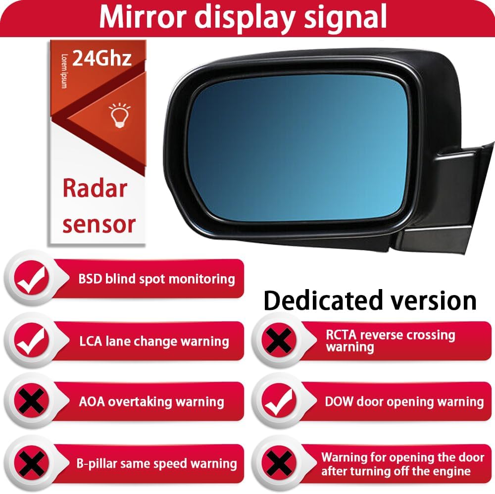 Confirm the model before purchasing: Please check your left and right rearview mirrors to avoid errors. The model name and year are for reference only, as the same car brand may have some differences in different countries. Choose the correct model based on your car's side mirror and year If you are unsure, please take photo of the side mirror and send us the car model year. We will determine the correct model for you and ship it to you. Suitable for vehicle models: for Acura MDX YD1 2000–2006 for Honda MDX YD1 2003–2006 for Acura MDX YD2 2007 2008 2009 2010 2011 2012 2013 for Acura MDX YD3 YD4 2014 2015 2016 2017 2018 2019 2020