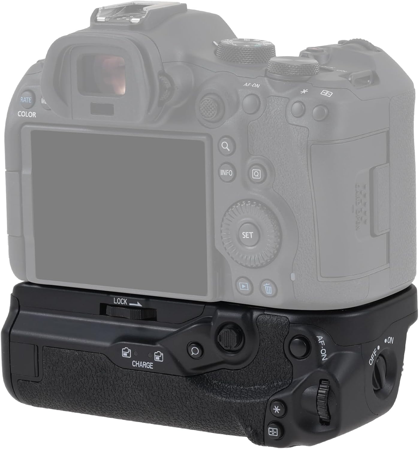 Product Description:Designed specifically as a high-performance replacement for the original Canon BG-R20, this battery grip is engineered to fit the ergonomic needs of modern photographers. Whether you are shooting a wedding with the R6 Mark II or capturing high-res video with the R5 C, this grip provides the stability, power, and control you need to shoot all day.🔋 Extended Power for Long Shoots This grip features two independent battery compartments designed to hold LP-E6, LP-E6N, or LP-E6NH batteries. Double the Capacity: Run two batteries simultaneously to dramatically extend your shooting time for events, time-lapses, or long video recordings. Hot-Swap Ready: (Depending on camera settings) Allows for continuous shooting by utilizing the second battery when the first is depleted.🎮 Full Vertical Shooting Controls Shooting in portrait orientation should feel as natural as landscape: Shutter Button: Half-press for focus, full-press for capture. Main Dial & AF-ON: Quickly adjust settings and lock focus without shifting your hand. Multi-Controller Joystick: Intuitively move your focus point while holding the camera vertically. 🛠 Enhanced Stability & Handling Better Balance: Provides a deeper handgrip, balancing the camera body perfectly when using heavy telephoto lenses (like 70-200mm). Sturdy Platform: Features a standard 1/4"-20 thread at the bottom, allowing for quick mounting on tripods or monopods. Secure Mounting: Utilizes a robust 1/4"-20 screw with locating pins to ensure the grip sits flush and tight against the camera body, preventing twisting.📦 Smart Design Features Tool-Free Installation: Attaches securely in seconds with a simple locking dial. Battery Lid Storage: A dedicated slot on the grip stores your camera's original battery door, ensuring you never lose it. Lightweight Build: Weighing just 277g / 0.61lb, it adds minimal weight for maximum functionality.Compatibility: ✅ Canon EOS R6 Mark III ✅ Canon EOS R6 Mark II ✅ Canon EOS R6 ✅ Canon EOS R5 ✅ Canon EOS R5 II ✅ Canon EOS R5 C