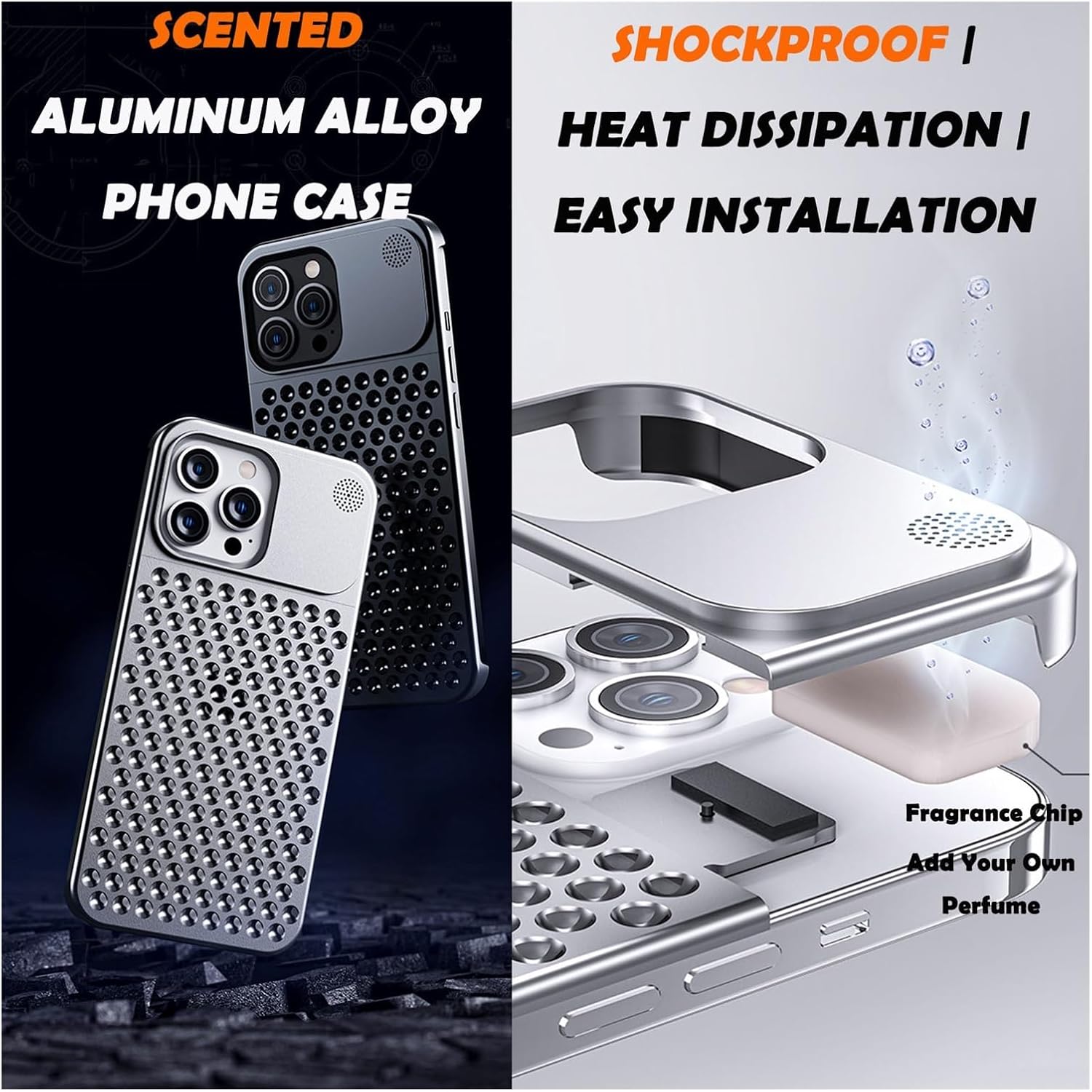 📦 What’s in the Box1 × Frameless Metal Case for iPhone 16 Pro Max/16 Pro/161 × Privacy Screen Protector💡 Why Choose UsPremium Aviation Aluminum Alloy – Cool touch, high hardness, scratch-resistant.Frameless & Slim Design – Minimalist style with a true bare-phone feel.Hollow Cooling Structure – Improves heat dissipation for gaming and heavy use.All-Round Protection – Military-grade drop resistance with 1mm raised edges for screen and camera.Added Comfort & Style – Built-in aromatherapy feature keeps your phone fresh and unique.✨ FeaturesShockproof & Scratch-Resistant – Full-metal shell with silicone inner layer absorbs impact and resists daily wear.Privacy Protection – Integrated screen protector keeps your information safe from side views.Perfect Fit – Precision cutouts for easy access to all buttons, ports, and features.Stay Cool – Hollow back design reduces overheating during extended use.