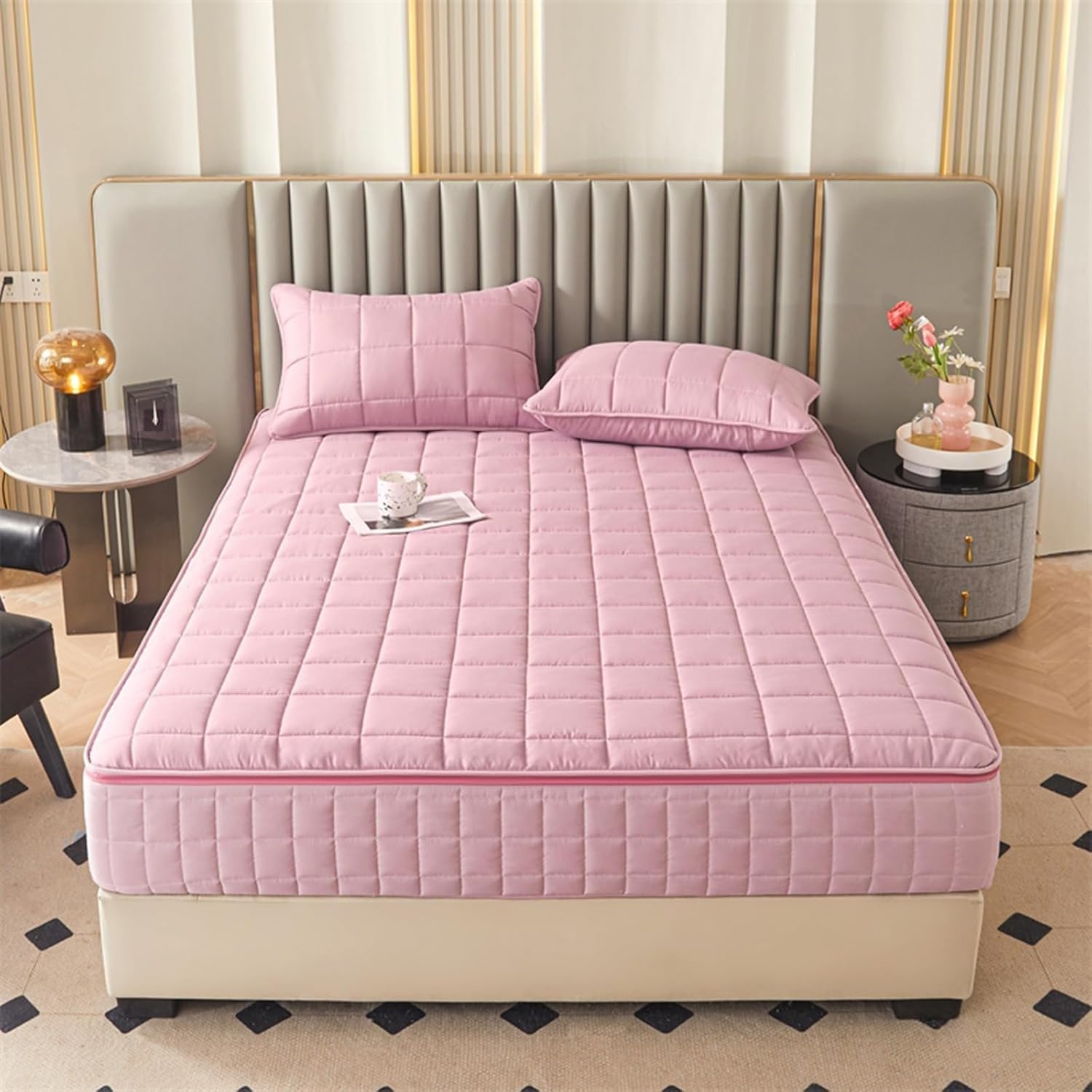 Premium 360° Full-Zip Quilted Mattress Protector – Customizable, Easy CareComplete Mattress ProtectionOur full-zippered mattress encasement provides 360° coverage (top, bottom, and sides) . The 5-sided quilted design ensures durableprotection while extending your mattress’s lifespan.Key Features:✅ Customizable Sizes – Need a special fit? Contactus for tailored dimensions!✅ 3-Layer PremiumMaterial –Top: Thickened polyester fiber (softdurable)Middle: Soybean cotton filling (fluffy & supportive)Back: Skin-friendly fabric (breathablehypoallergenic)✅ Full-Zip Encasement – Zipper on all sides for easy installation/removal and hassle-free washing.✅ Deep Pocket & Secure Fit – 360° elastic edges keep the cover snug on any mattress (memory foam, hybrid, or spring).✅ Machine Washable – Cold water, gentle cycle, no bleach. Tumble dry low. (Do not iron or dry clean.)🏡 Perfectfor Multiple Uses:Homes (bedroom, guest room, kidsroom)Hotels, Hospitals, DaycaresNursing Homes & Care Facilities📦 Package Includes:1 × Mattress Protector (Pillowcase not included)Note:Slight size variance (±1-3cm) due to manufacturing.Colors may differ slightly due to lighting.❓ Questions?We offer 24-hour customer support! Contactus anytime for assistance.Why Choose Our Mattress Protector?🔹 Total Encasement – Blocks liquids, stains, andallergens.🔹 Breathable Comfort – Stays cool insummer and cozy in winter.🔹 Easy Maintenance – Removable & machine-washable for convenience.