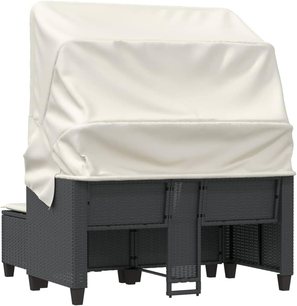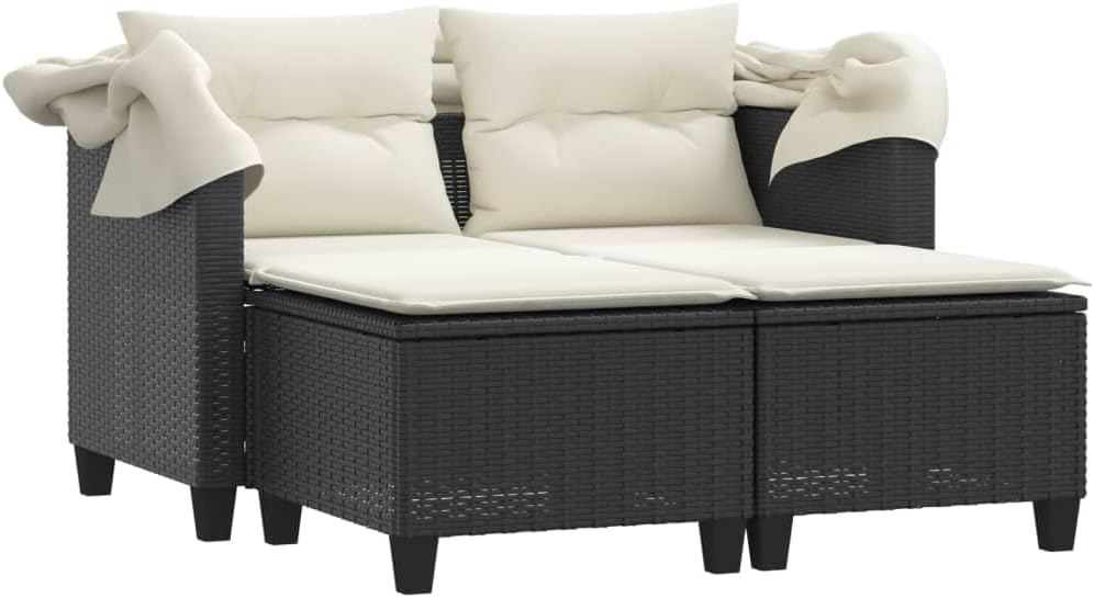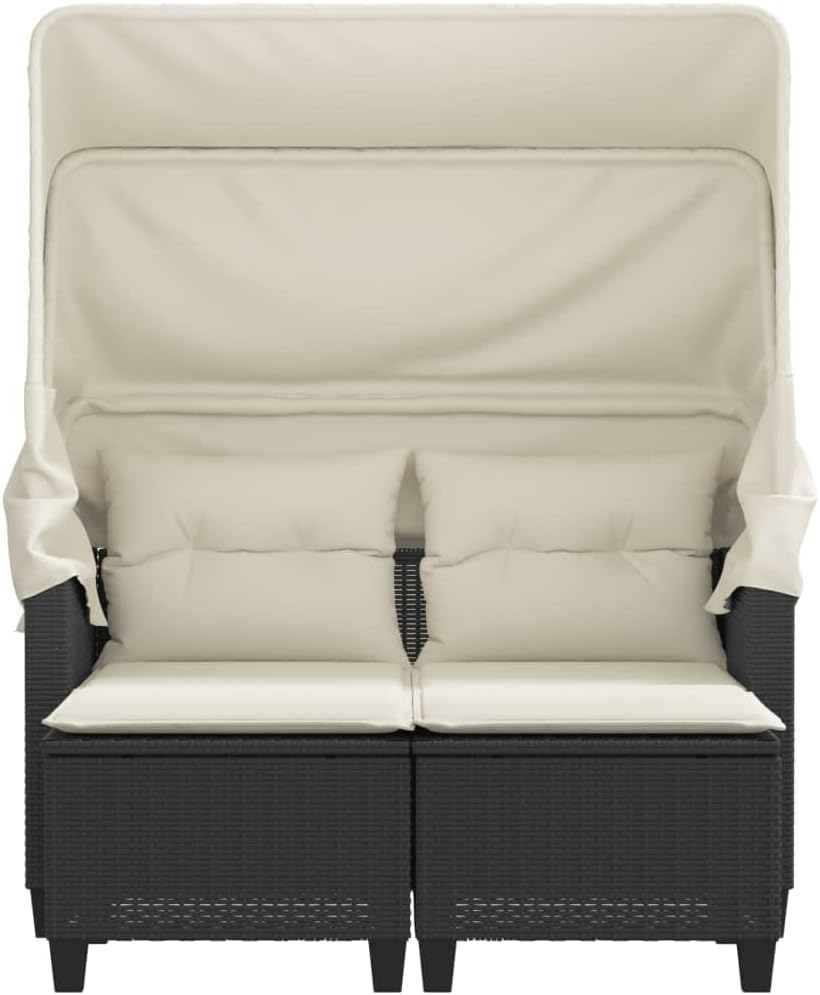 This 2-Seater Garden Sofa with Canopy combines style and practicality, made especially for outside in places like balconies, patios, or gardens. Made from sturdy poly rattan and boasting a sleek, modern design, it's all about providing comfy seating for two, making it an inviting spot to kick back and soak up the outdoors.This garden sofa has adjustable armrests that let you find your perfect lounging angle.Made from weather-resistant materials, it’s built to last even in mixed weather.The modern design perks up your outdoor area, matching well with existing garden styles and decor.Assembly is a breeze with minimal tools needed, giving you the chance to enjoy your new furniture without fuss.The set features removable covers on the cushions, making it dead easy to clean and maintain—ideal for outdoor use.Color: Black Shape: RectangularMaterial: Synthetic Poly RattanFinish: Powder-Coated Indoor/Outdoor: Outdoor OnlyCover Included: YesRoom: Garden and terraceCapacity: N/AMaximum Number of People: 2Maximum Weit: 242 lbsDimensions: 25.6 x 48.4 x 61.0 in (W x L x H)Min-Max Dimensions: 24.4 in - 61.0 inLeg Height: 2.0 inWeight: 58.6 lbsSeat Depth: 23.6 inSeating Capacity: 2Swings: NoDelivery Contains: 1 Garden sofa with canopyAssembly Required: YesRecommended Number of People for Assembly: 2Patio Furniture & Accessories / Patio Seating / Sofas