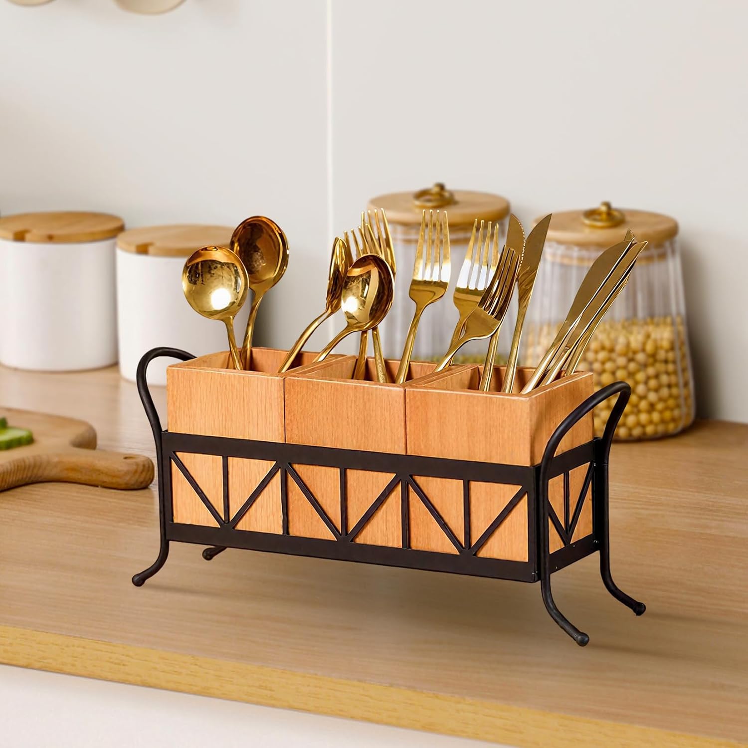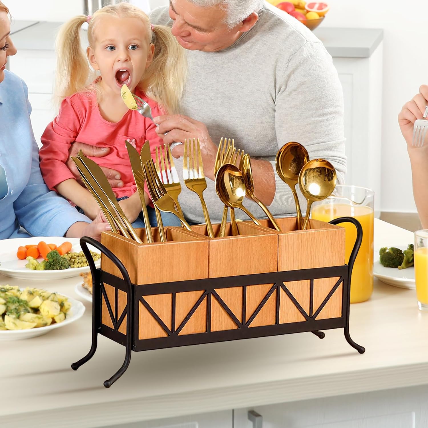 Tired of messy countertops and searching for the right utensil during parties or BBQs? Discover how this waterproof acacia wood utensil holder with three detachable compartments keeps your flatware organized and ready for every gathering.Highlights at a Glance:- Crafted from durable, waterproof acacia wood for long-lasting beauty - Three detachable compartments make sorting flatware simple and convenient - Metal rack with dual handles offers easy portability for any event - Padded feet keep the holder stable and protect your surfaces - Versatile design fits kitchen counters, parties, buffets, and BBQs - A thoughtful gift that adds style and organization to any homeSpecification:Product Name: Wood Utensil HolderSize: 13.39x3.54x6.10 inColor: NaturalMaterial: Acaxia Wood and MetalFriendly Note:Keep the utensil holder dry and clean for best durability; wipe with a soft, damp cloth when needed.Do not use harsh chemicals or soak in water to protect the finish.Avoid overloading each compartment to prevent tipping or damage.Packing List:1x Utensil Caddy1x Instruction Manual