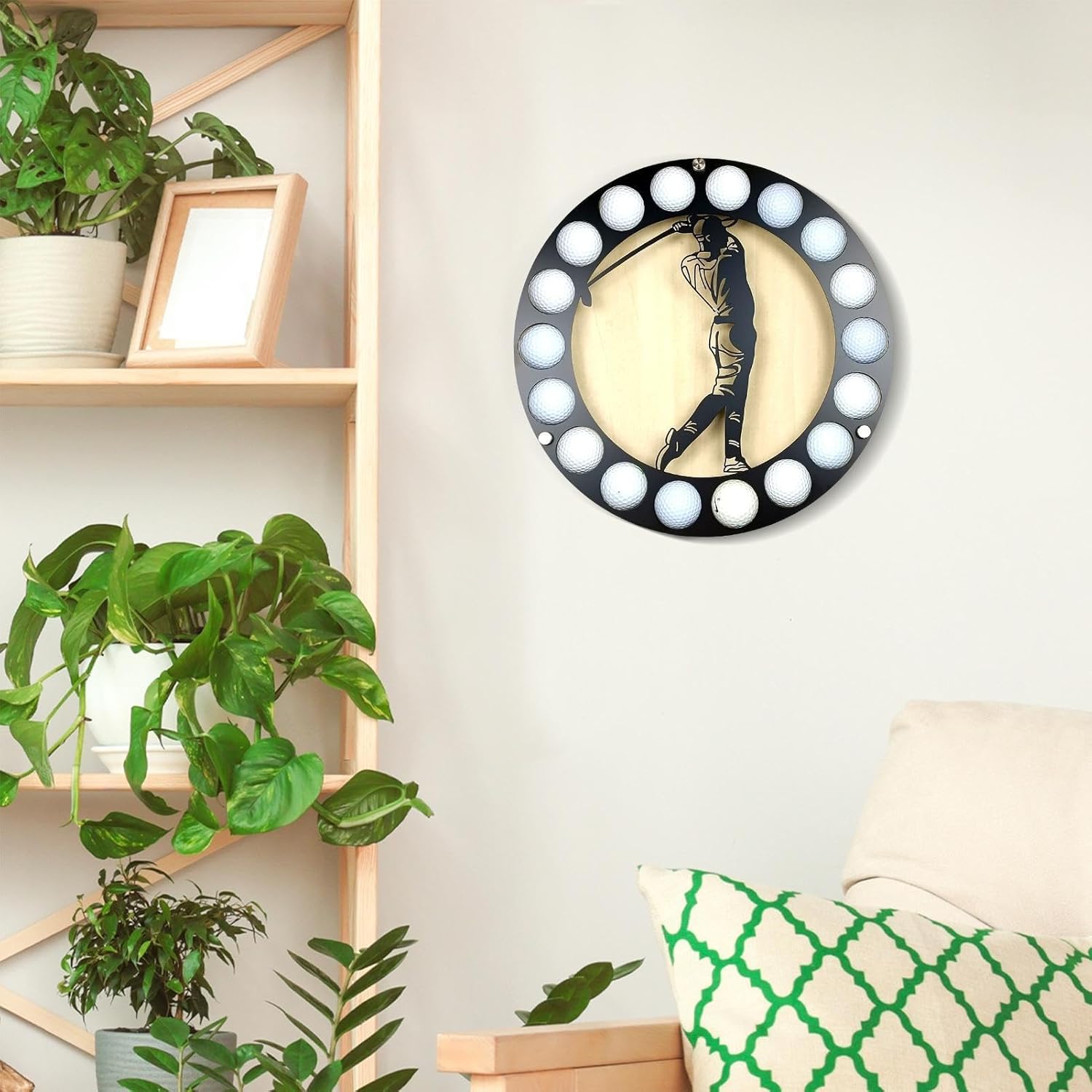 Product description Organize your golf collection with this stable golf ball holder wall mount. Perfect for storing, displaying, and showing off your golf wins. The package comes with screws for easy installation. It's a great gift for anniversaries and golf enthusiasts. Specification:Name: Golf Ball Display HolderMaterial: iron + wooden boardOverall size: about 35*35cm/13.8*13.8inSingle ball hole diameter: about 4.3cm/1.69inPack list:Golf Ball Display Holder*1 Manufacturer Contact Information Refer to description
