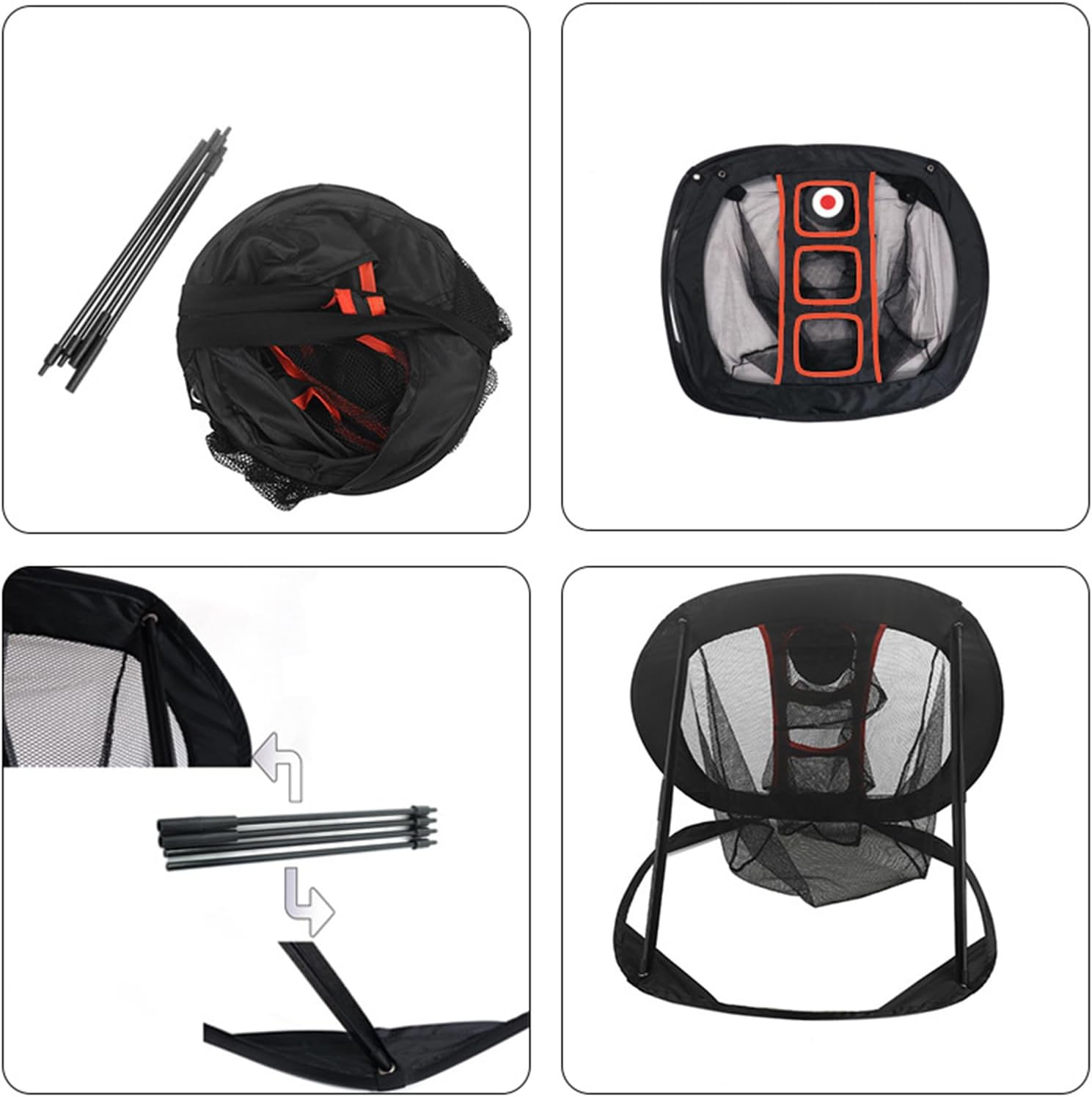 Crafted from lasting nylon materials, this golf net serves as an important training aid for golfers of all levels, including men, women, kids, teen boys, and beginners. Improve your driving accuracy and practice your swing with ease in the comfort of your indoor space or backyard. The setup process is straightforward, ensuring you can start hitting and practicing distance without delay. Included with the product is a convenient storage bag, making it portable and easy to store when not in use. Perfect for dads and golf enthusiasts who seek to refine their skills at home, this golf net supports consistent practice and improvement without the need for a course.SpecificationProduct name: Golf NetMaterial: nylonSize: about 70x71x54cm/27.56x27.95x21.26 inchesWeight: 400GListSquare net x1, bracket x4, ground nails x2, storage bag x1orSquare net x1, bracket x4, ground nails x2, three-color folding grass x1, ball x6, storage bag x1