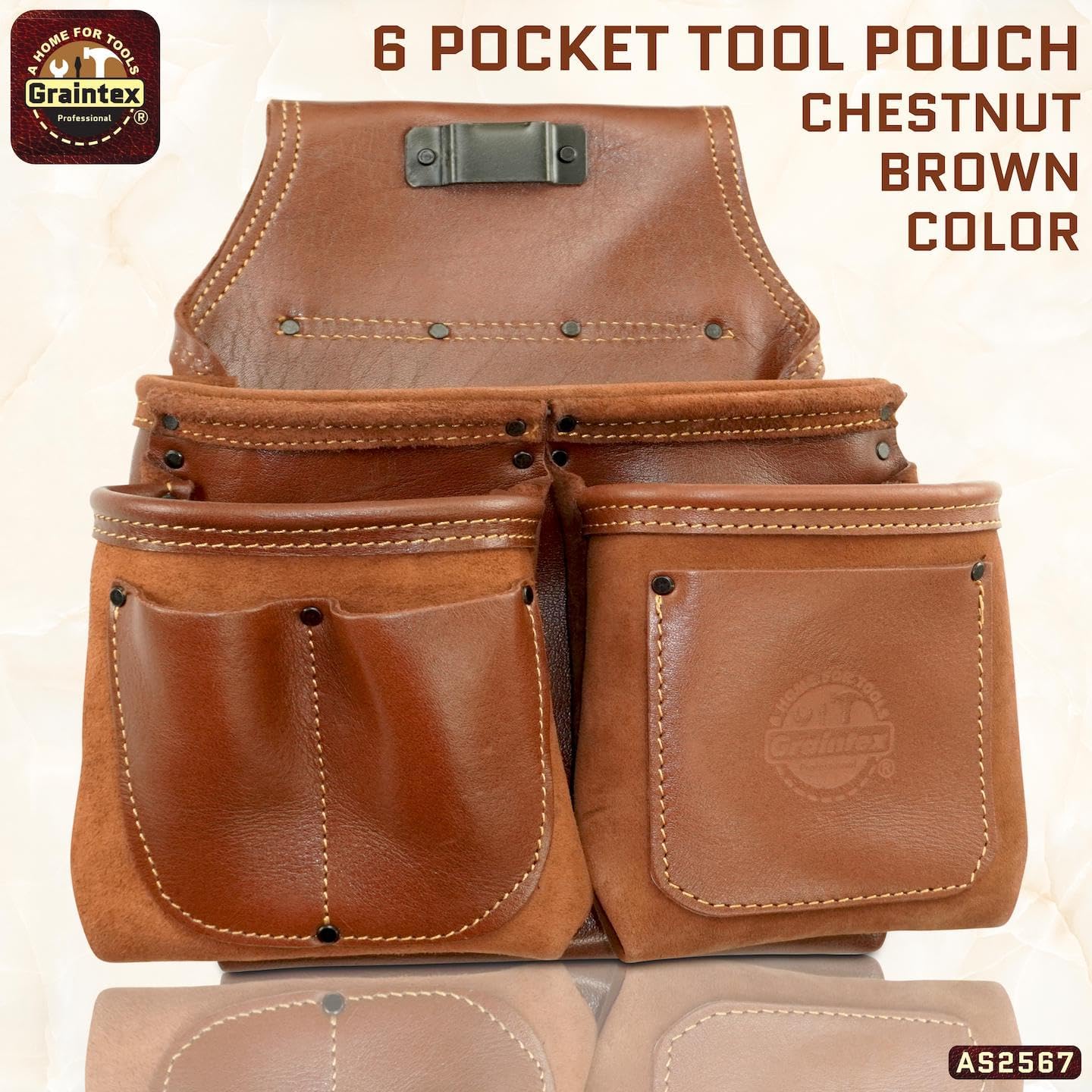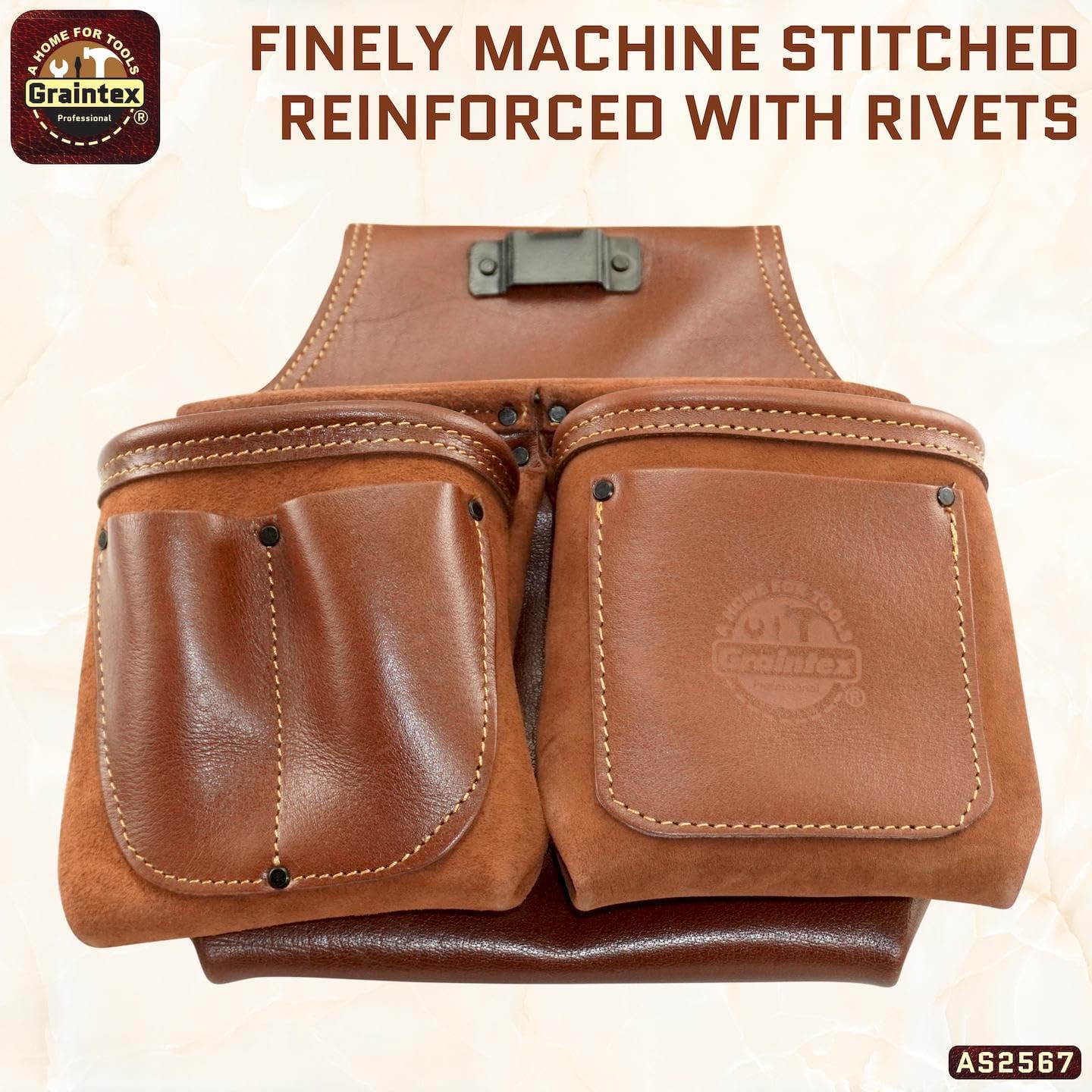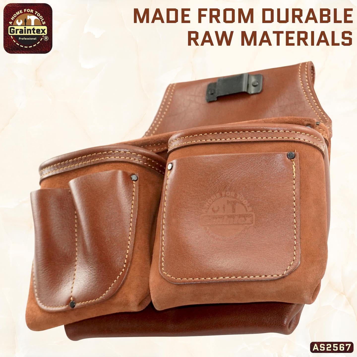 Introducing the Graintex Ambassador Series 6 Pocket Framers Tool Pouch, a premium addition to any professional's toolkit. Crafted meticulously from top grain leather, this nail pouch is designed to meet the rigorous demands of construction, carpentry, and framing professionals. As part of Graintex's esteemed ambassador series, it epitomizes durability and functionality. This exceptional framing tool belt embodies the perfect blend of form and function, ensuring that you have all your essential tools within reach. The tool pouch features ten spacious pockets, allowing for organized storage of various tools, from small hand tools to larger framing tools. This structure not only enhances efficiency on the job but also ensures that tools are easily accessible, reducing downtime and increasing productivity. For those in the construction industry, the Graintex tool pouch is a game-changer. It is specifically designed to accommodate the needs of framers, electricians, carpenters, and handyman professionals. Whether you're using a speed square or a pry bar, this framing tool belt offers ample space and organization for all your tools. The high-quality leather construction ensures longevity and robustness, making it a reliable companion for daily use. With a thoughtful design that includes a convenient tool pouch with belt clip, this product enhances portability and ease of use. Whether you're wearing it as a carpenter tool belt or an electrician tool pouch, its adaptability makes it suitable for various trades. Additionally, the leather tool belt design ensures a comfortable fit, allowing for extended wear without discomfort. Invest in the Graintex Ambassador Series 6 Pocket Framers Tool Pouch and elevate your work efficiency. This tool pouch is more than an accessory; it's an essential tool that complements the skill and precision of every craftsman. Choose Graintex for quality, durability, and excellence in every product.