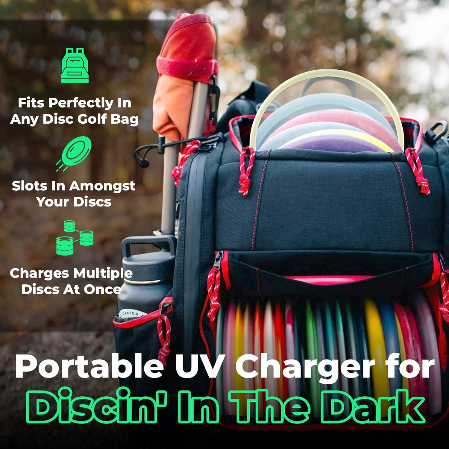 Halo Red Disc Golf Glow Charger | Remote UV Flashlight Alternative | Charges 2 Discs in 3 Seconds | USB-C Rechargeable | Fits in Bag | Glow Equipment | Compact Tool for Night Rounds and Visibility