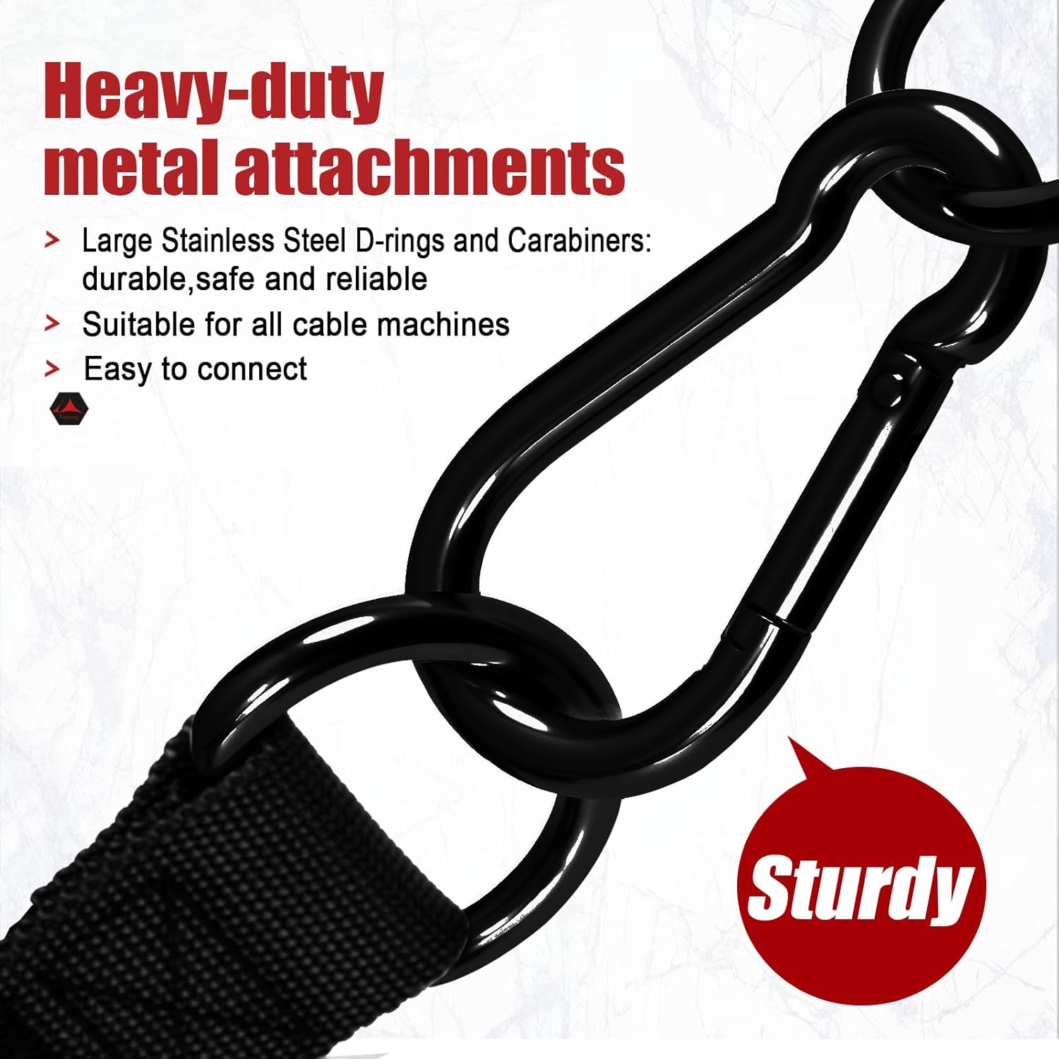 | Material | Comfortable & Sturdy Rubber Grips; Strong Widened & Thickened Straps; Solid Large Steel D-Rings & Carabiners |