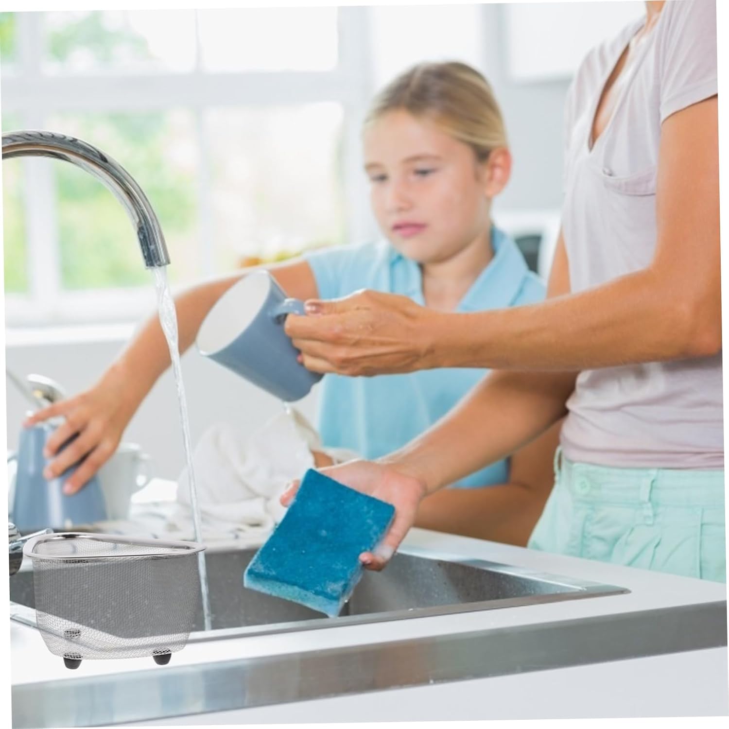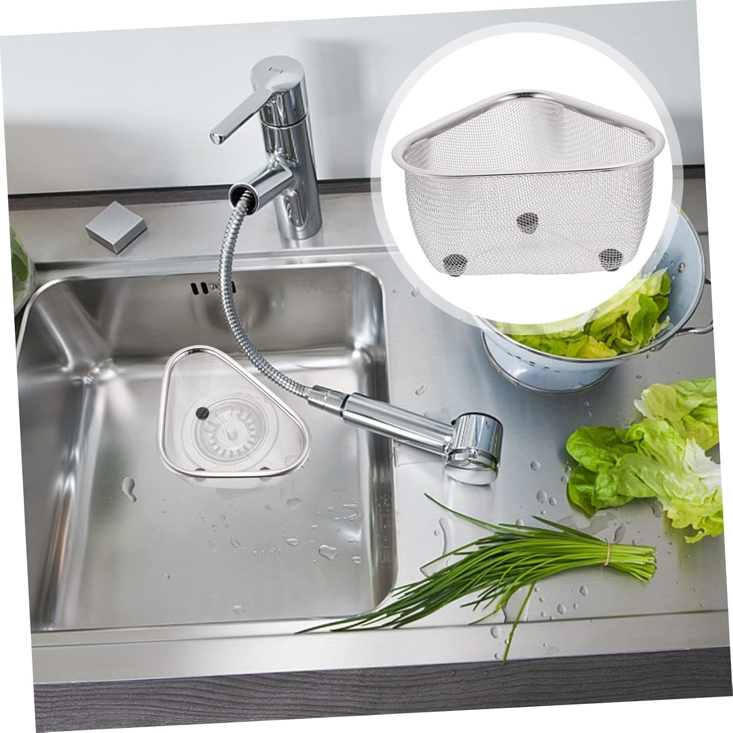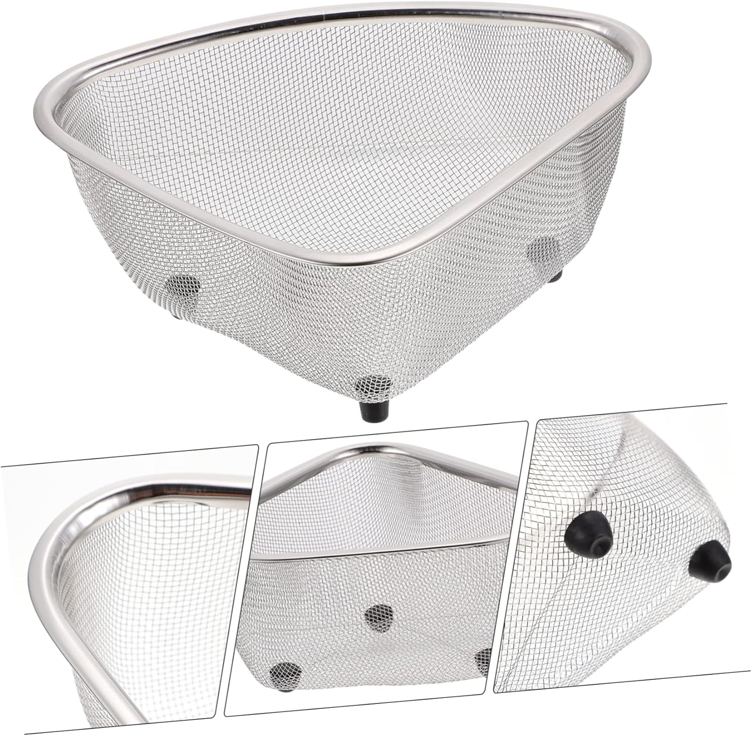 HOMSFOU 2 Pcs Drain Basket Sink Leftovers Triangular Sink Drainer Corner Sink Drainer Metal Washing Bowl Ceramic Sponge Holder Metal Strainer Dish Drying Rack Plastic Sink Rack Mesh