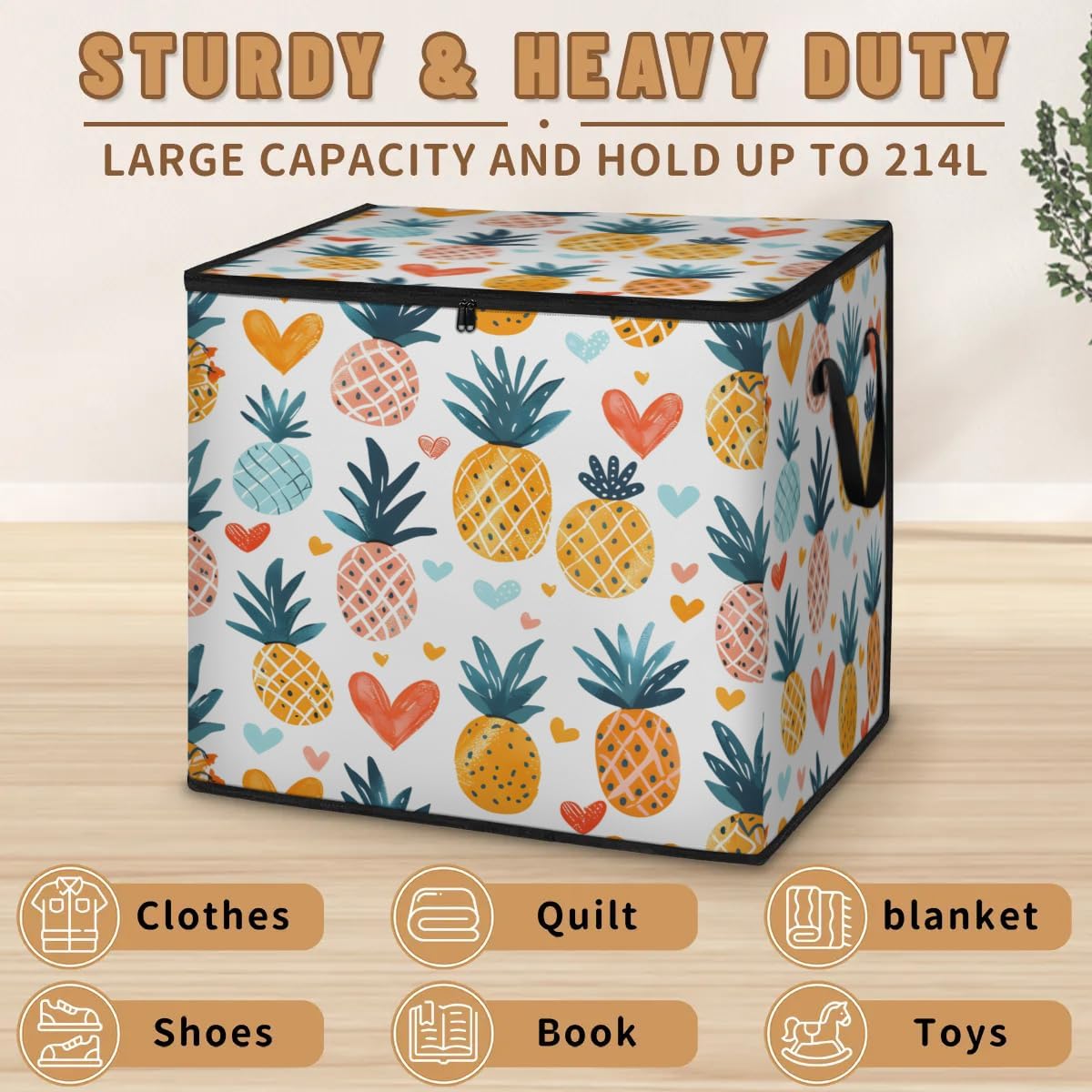 Large storage bags with zipper is a versatile and durable storage solution for your home. Made from waterproof polyester fabric, it protects your belongings from dust, dirt, and moisture. With a generous 214L capacity, this bag is perfect for storing comforters, blankets, seasonal clothes, and bedding.The dual zipper opening provides easy access to your items, while the reinforced handles offer added strength for heavy loads. Its foldable design saves space when not in use, making it ideal for closet organizers or under-bed storage.Perfect for moving bags or home storage, this bag helps keep your items organized and clutter-free. Whether you’re storing bedding or seasonal clothes, it’s a practical and reliable solution for all your storage needs.