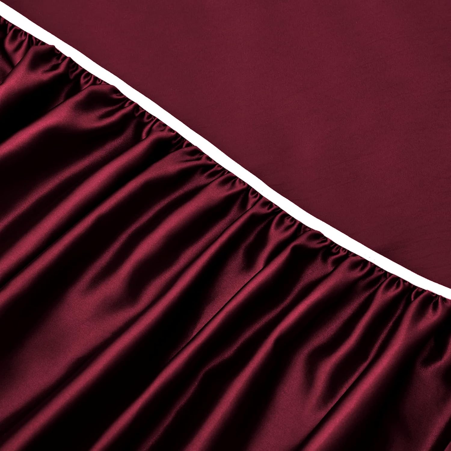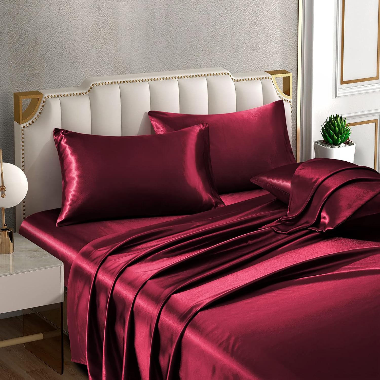 About Horbaunal: Horbaunal, a home textile brand, aims to produce and sale premium quality bedding and textile product at a affordable price. Our mission is to help our customers have a wonderful sleeping experience and create a warm home. Feature: Super Soft - Made of high quality polyester fiber (satin fabric) with beautiful sheen, soft and breathable, anti pilling, fade and wrinkle resistant. Perfect Fit - Design for a snug fit, 16 inch deep pocket and elastic band around the fitted sheet can hold your mattress firmly. Easy Care - Machine wash in cold water and tumble dry low. Recommended to wash it with laundry bag to prevent snagging. Design - Satin fabric brings a silky feeling, adding a elegant and advanced style to your room, creating a luxury atmosphere. Pure color bed sheet set blends easily with any decor, everthing is just right. Best Choice - The satin sheet set is perfect for any room in your house, like bedroom, guest room, kids room or vacation home. Best gift for your friends, family and lover in Birthday, Mother's Day, Father's Day, Valentine's Day and Christmas. Size for Your Choice: 4 Piece Twin Satin Sheet Set: 1 Fitted Sheet (75" x 40" + 16"), 1 Flat Sheet (96" x 66"), 2 Pillowcases (20" x 30") 6 Piece Full Satin Sheet Set: 1 Fitted Sheet (75" x 54" + 16"), 1 Flat Sheet (96" x 81"), 4 Pillowcases (20" x 30") 6 Piece Queen Satin Sheet Set: 1 Fitted Sheet (80" x 60" + 16"), 1 Flat Sheet (102" x 90"), 4 Pillowcases (20" x 30") 6 Piece King Satin Sheet Set: 1 Fitted Sheet (80" x 78" + 16"), 1 Flat Sheet (108" x 102"), 4 Pillowcases (20" x 40") Your satisfaction is our primary goal. We are devoted to produce high quality bedding set for great sleeping. Don't hesitate, just try our product and you will fall in love it.