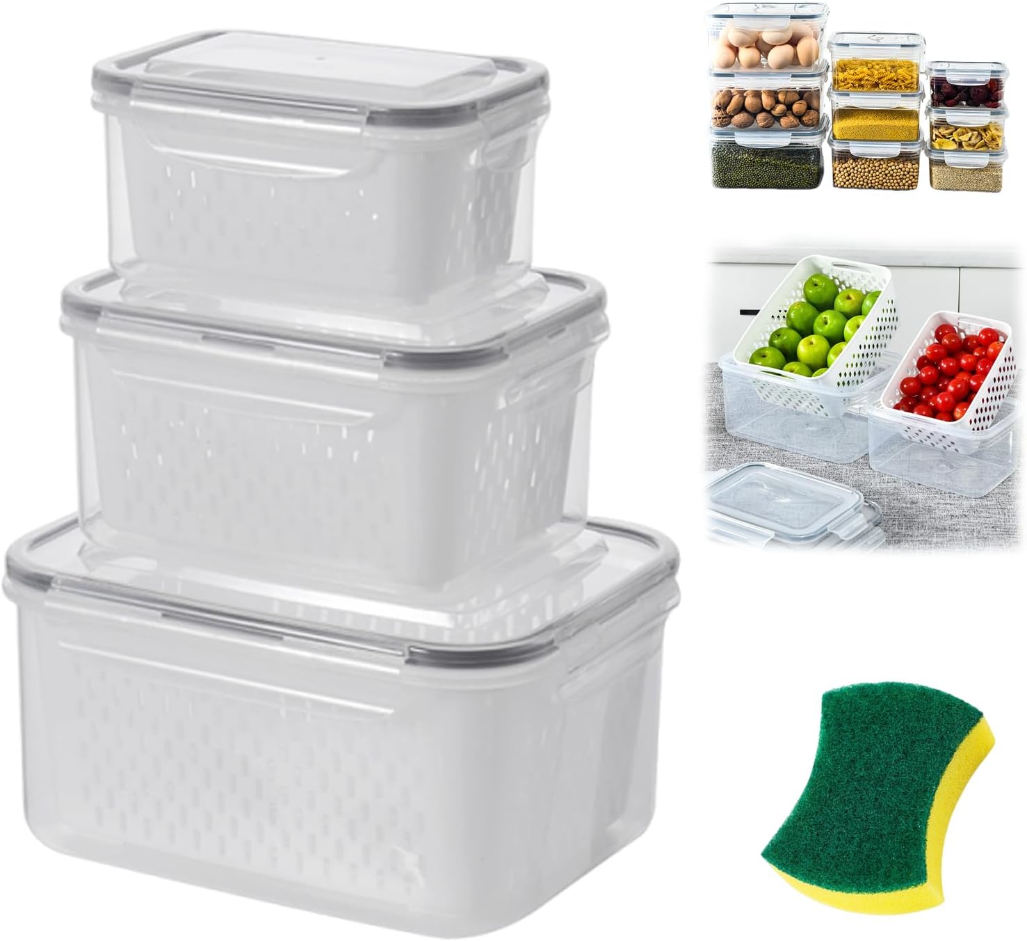 Features: 1. This product is equipped with a sponge to meet your needs 2. Transparent design makes it easy to check the status of food 3. Excellent sealing keeps food fresh and dry for a long time 4. Built-in filter helps clean and drain water 5. Reduce clutter and keep refrigerators and cabinets tidy and organized Specifications: Name: Household Transparent Plastic Food Storage Box-Including Drain Basket Material: PP, Silicone Color: gray, blue Size: S: 13.5*9*7.8cm/5.31*3.54*3.07inch M: 16*12*9.5cm/6.3*4.72*3.74inch L: 22*17*11.5cm/8.67*6.7*4.53inch Color: Blue, Gray Weight: S: 0.12kg/0.26lb M: 0.18kg/0.4lb L: 0.256kg/0.56lb Capacity: S: 850ml/29.99oz M: 1750ml/61.73oz L: 3300ml/116.4oz Package includes: 1/2/3 *Household Transparent Plastic Food Storage Box-Including Drain Basket 1*Sponge Notes: 1. Manual measurement, there may be an error of 2 to 3 cm 2. Due to different monitors and light, the picture may not show the actual color of the product, please refer to the actual product