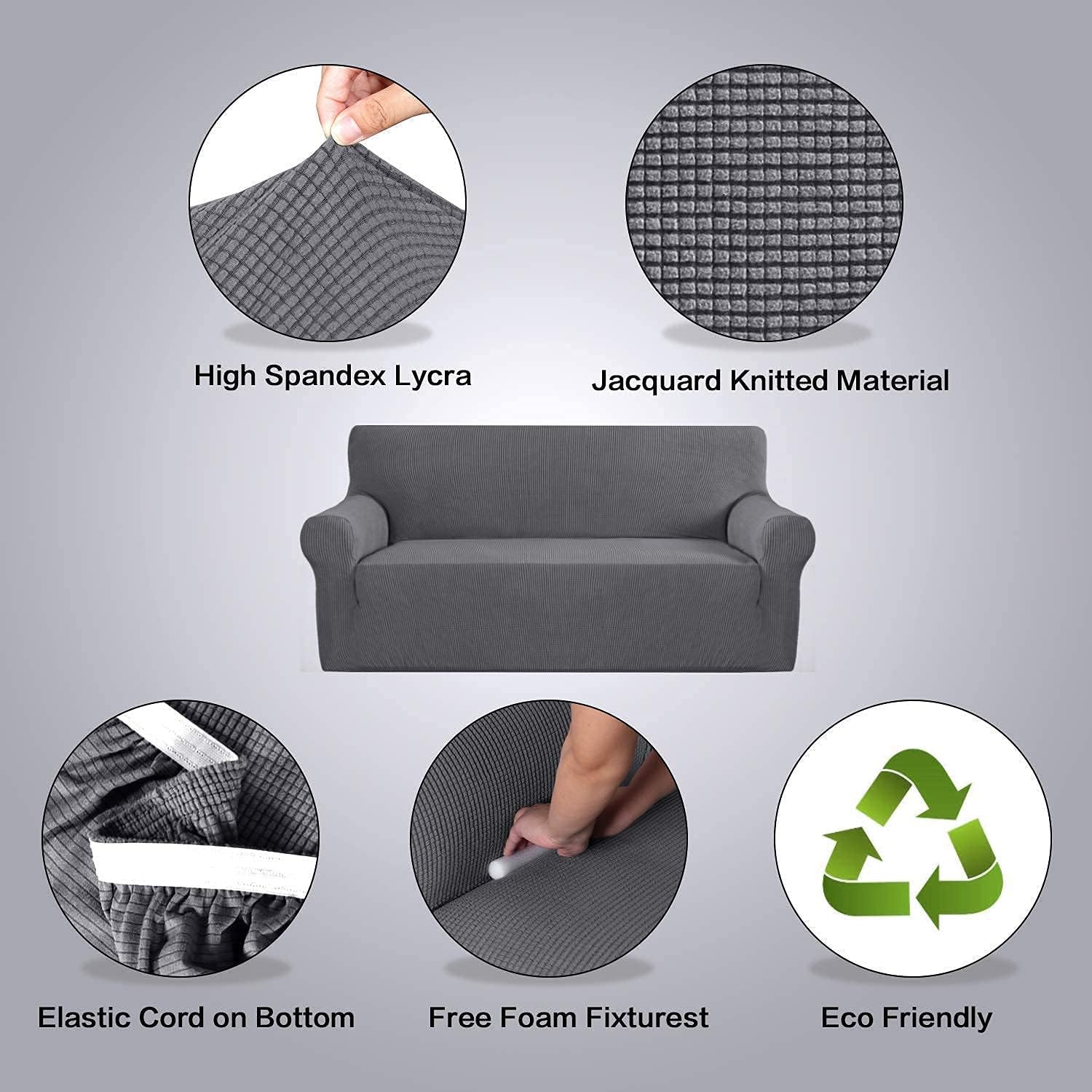 They are made of durable and gentle 85% polyester and 15% spandex knitted jacquard fabric, soft rich and textured. The sofa slipcover can fit the width between 72-96 inches. And the recliner slipcover can fit back circumference 78 Inches to 88 Inches. Easy to install, with instructional tags to seamlessly guide you through the installation process. Buy them together can better protect the furniture and give you a better feeling.It is the perfect choice for all those who are in need of functionality and utility value, but want to avoid compromising on good looks and aesthetic appeal.