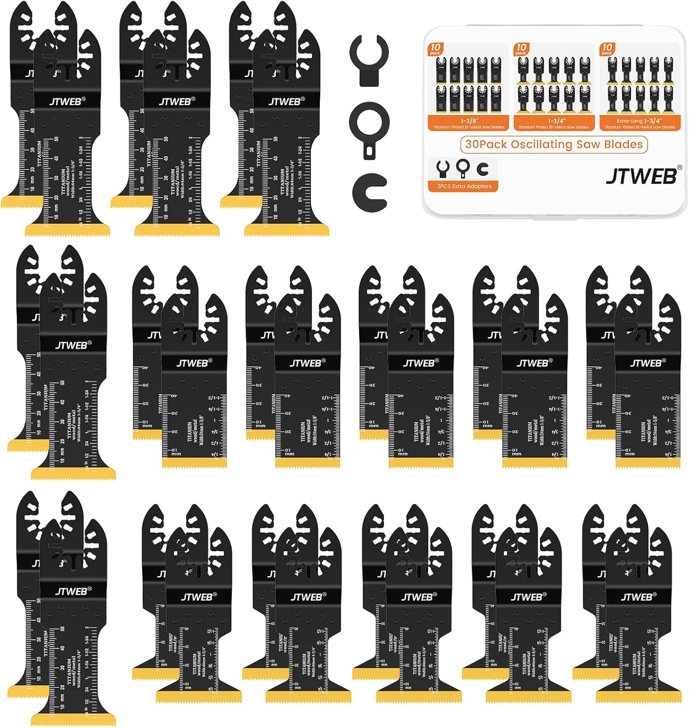 | Included Components | 10pc 1-3/8", 10pc 1-3/4", 10pc Extra-long 1-3/4" titanium blades, 3pcs adpaters |