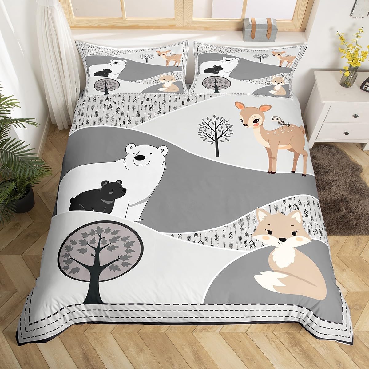 Package Include: Duvet Cover, Pillowcase; High Quality Duvet Cover Set Pattern Bedding Set, simply decorating your rooms any time you want, bringing you fresh feel for year round use. Polyester: Made from polyester microfiber, the sheet set offers strength, natural resistance to shrinking and a noticeably soft hand feel. Size Information: Twin size 2pcs: 1 x Duvet Cover 68" x 90", 1 x pillowcase 20" x 30".Without Comforter. Full size 3pcs: 1 x Duvet Cover 80" x 90", 2 x pillowcase 20" x 30".Without Comforter. Queen size 3pcs: 1 x Duvet Cover 90" x 90",2 x pillowcase 20" x 30".Without Comforter. King size 3pcs: 1 x Duvet Cover 104" x 90", 2 x pillowcase 20" x 36".Without Comforter. Personalize your bedroom: Beautiful design and colorful print, makes your bedroom unique and brings you a wonderful dream. Washing instructions: Machine wash separately in cold water,hang dry, do not bleach. Occasion: The cute soft duvet cover bedding sets designed for Children ,Adult, Men, Women, Teens. This duvet cover set is also suitable for full seasons, Spring, Summer, Autumn and Winter.