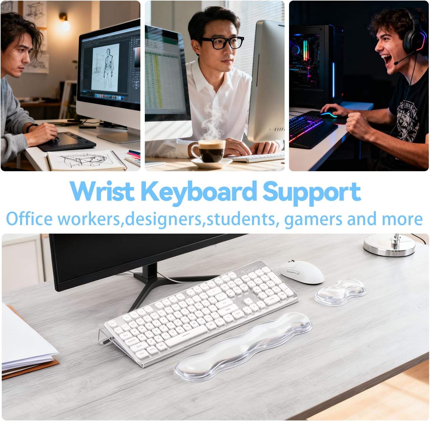 | Color | 3pcs White Keyboard Riser With Wrist Rest |