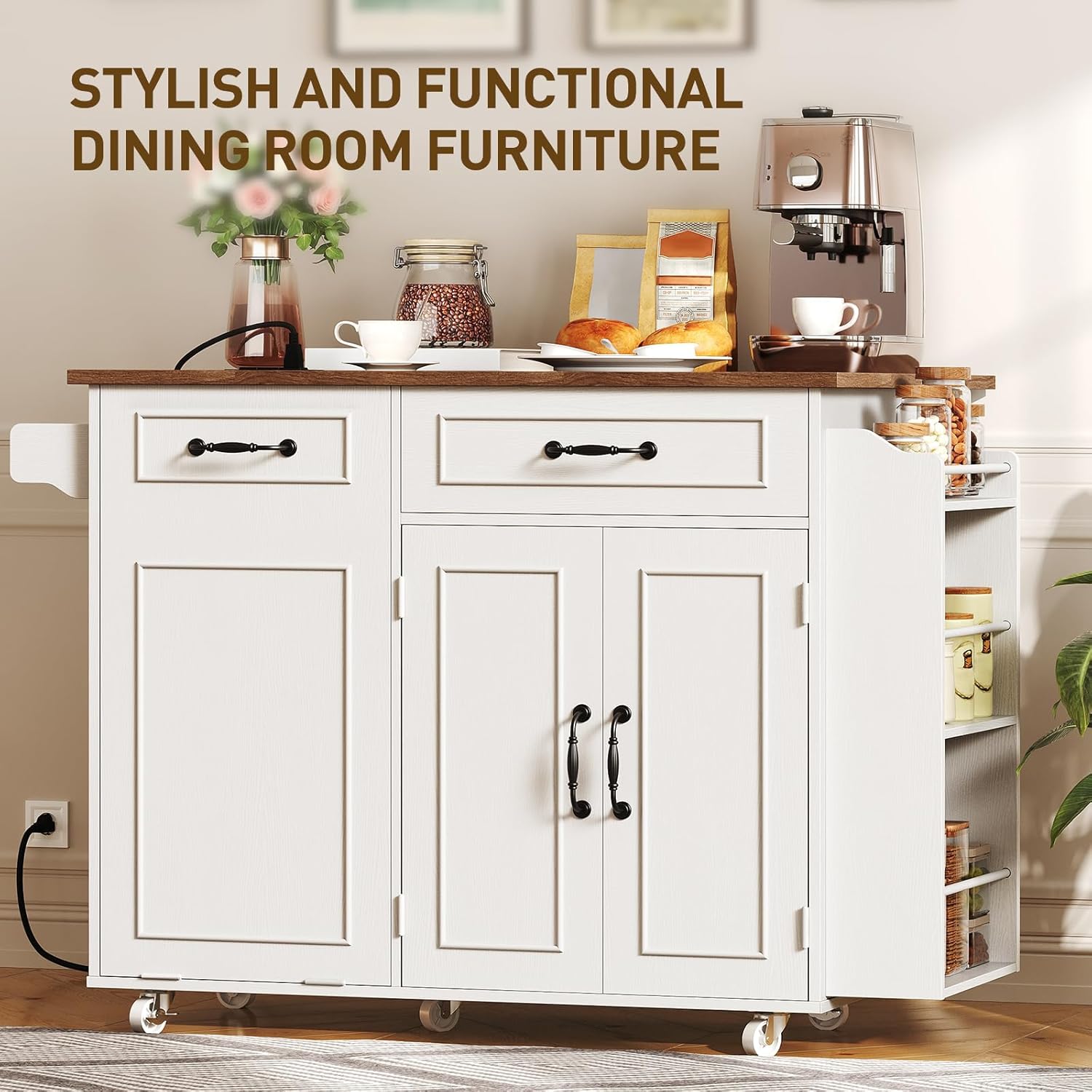 | Included Components | 1 x Farmhouse Kitchen Island, 1 x Hardware Kit, 1 x Instruction Manual, 1 x Power Outlet |