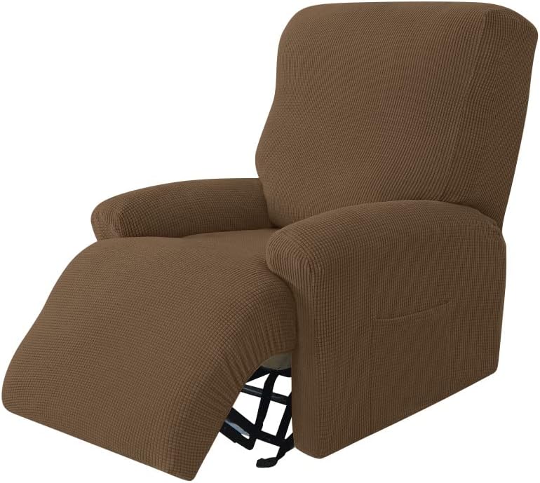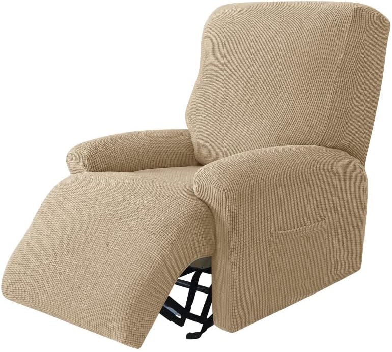 Perfect Slipcover to Match Your Personal StyleOur recliner covers are made of spandex jacquard fabric which is super elastic and will satisfy the needs of most homes. It could fit your manual and electric recliners chair sofa perfectly, fully covering your recliner chair, prolonging its service life. And our stretchable recliner chair cover use innovative design of large checker pattern, modern, stylish and easy to blend in with bedroom and living room style. It is machine washable, no fading even after repeated cleaning. Effortless installation and taking off can be done in 5 mins without reading the instructions.We believe this furniture protector will bring a different color to your home decor and so durable and comfortable reclining chair cover will be loved by you.