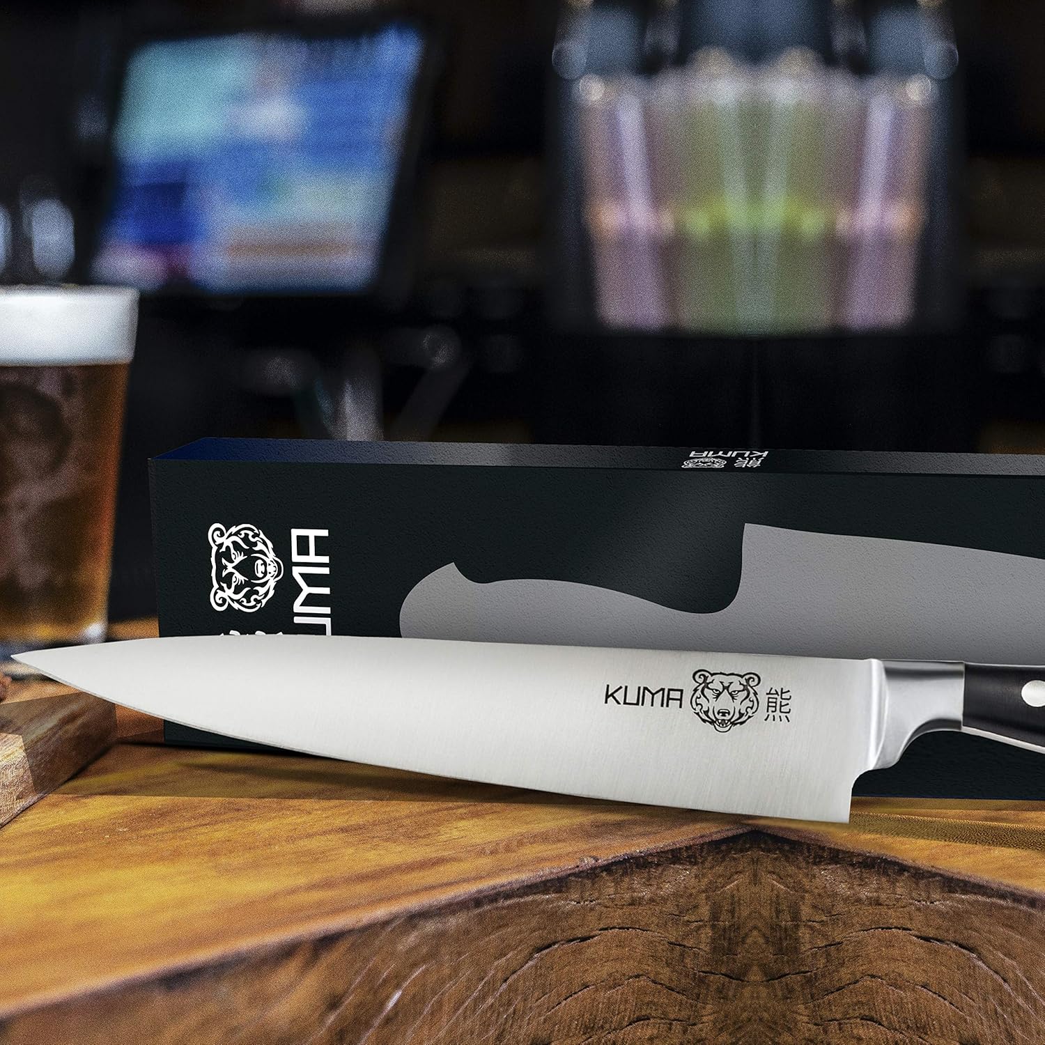 Because You Deserve A Slice of Life - Are you tired of dull knives that cannot slice tomatoes without mashing them to pulp? - Does that clunky knife you currently use feel too heavy to perform smoothly and comfortably? - Do you really need one knife for carving your roast, another for delicately slicing and chopping vegetables, and a third for filleting fish? Introducing Your New Elegant Chef Knife by Kuma!