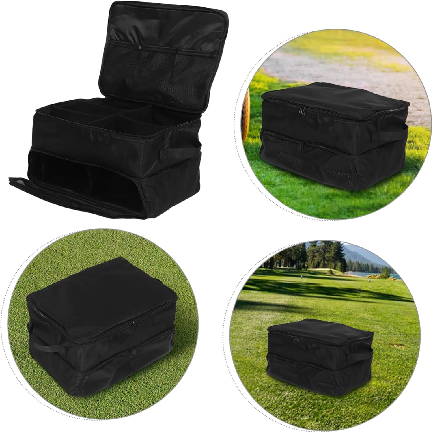 Package List 1 x bag 1 x long baffle 3 x short baffles 1 x long divider Characteristics -Multipurpose use: ideal for golf and other outdoor sports or travel, offering a versatile storage for various activities car golf organizer -Ample storage space: designed to hold golf balls, bags, shoes, and other accessories, providing ample space for all your golfing needs must have golf accessories -Color:Black golf trunk orgaizer -Easy to carry: the design allows for easy storage and portability, making it convenient to take with you anywhere golf accessory -Sturdy and : built with reliable materials, this bag ensures high reliability and longevity, even with frequent use golf organizer -Material:Oxford cloth golf ball organizer -Size:42.00X33.00X25.00cm/16.51X12.97X9.82in golf bag organizer -Wear resistant: features reliable construction to protect from wear, ensuring it remains in condition golf car organizerGoods Descriptiontrunk golf organizer for car The portable design means you can easily carry it by hand, and the reliable construction ensures it can withstand the rigors of travel and outdoor use.golf bag organizer Whether you're heading to the golf course or traveling, our golf trunk organizer is a must-have accessory.large golf trunk organizer Its large capacity can hold all your essential golf items, from golf balls to clothing