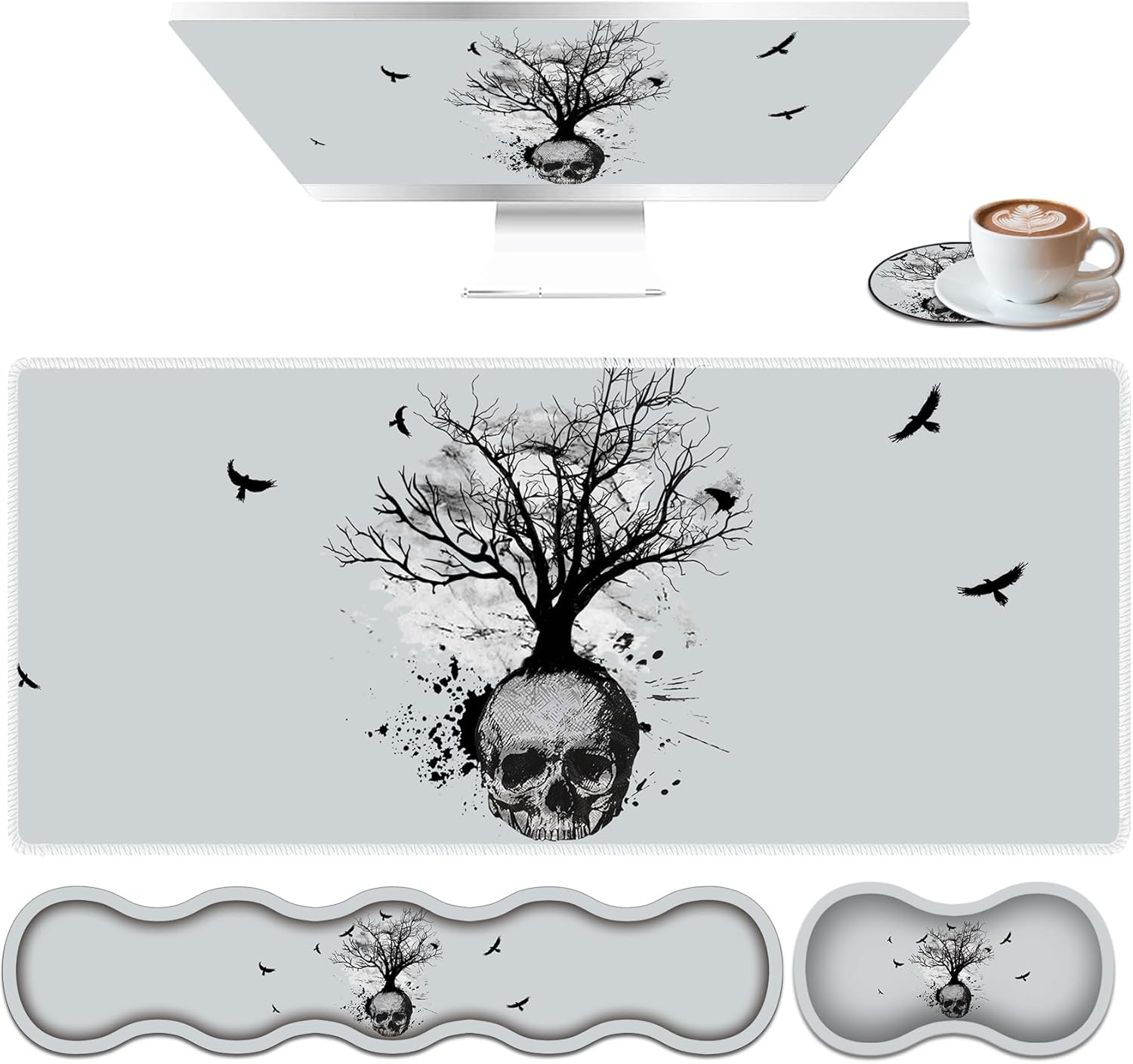 Features:Ergonomic DesignMouse wrist rest and keyboard wrist rest prevent wrist discomfort caused by prolonged computer use and reduce wrist pressureSoft Lycra and Memory FoamLycra has a soft, comfortable surface and a smooth touch. The memory foam pad supports the wrist, disperses the pressure and allows the arm to relax naturally.Non-slip Rubber BaseSoft and dense non-slip rubber base effectively prevents sliding during use.Package Includes:1×Desktop Mouse Pad1×Mouse Wrist Rest1×Keyboard Wrist Rest1×CoasterIf you have any questions, please feel free to contact us and we will reply you within 24 hours.