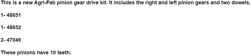 Lawn Sweeper Drive Gear Pinion & Dowel