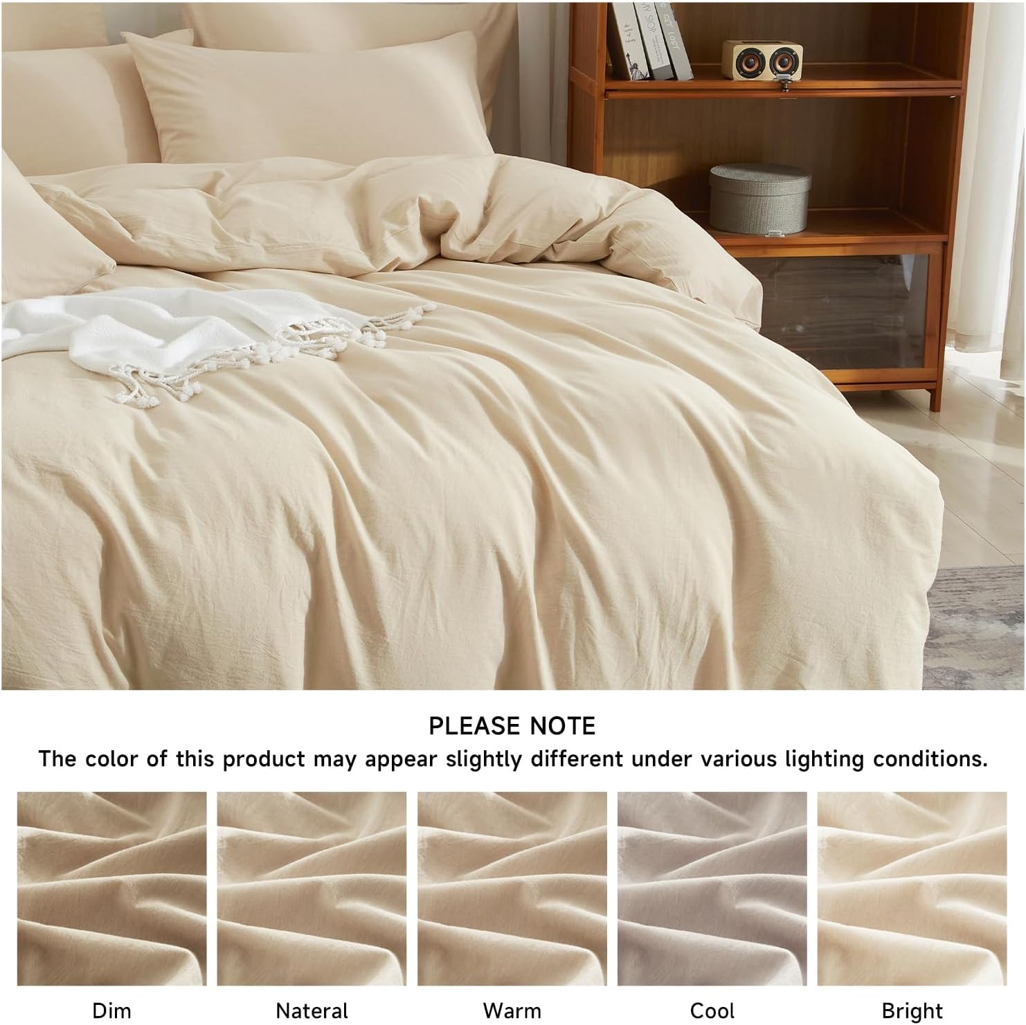 YASMENG Duvet Cover Set – Soft, Stylish & Minimalist Comfort Upgrade your bedroom with the YASMENG Duvet Cover Set, a perfect blend of linen cotton for soft, comfortable, and chic lightweight comfort. Designed with a linen-like textured, this comforter cover set adds a farmhouse charm while keeping your sleep cozy and breathable. Crafted for simplicity and elegance, this plain simple bedding features a solid color design that complements any minimalist or vintage décor. The duvet cover set is easy to care for and durable, ensuring long-lasting comfort and style. ✔ Linen Cotton Blend – Breathable, soft, and naturally wrinkle-resistant. ✔ Stonewashed Texture – Adds a relaxed, lived-in look for a cozy feel. ✔ Minimalist & Solid Color – Versatile for modern, farmhouse, or vintage aesthetics. ✔ Lightweight & Comfortable – Ideal for year-round use. Material: 70% Cotton and 30% Linen Features: super soft, comfortable, skin-friendly, breathable, durable, and non-fading Season: All the season, winter,summer,autumn/fall,spring Product Size: Twin: 1 x Duvet Cover (66" x 90" / 168x229cm), 1 x Pillowcases (20" x 30" / 51x76cm) Queen: 1 x Duvet Cover (90" x 90" / 229x229cm), 2 x Pillowcases (20" x 30" / 51x76cm) King: 1 x Duvet Cover (102" x 90"/ 260x230cm), 2 x Pillowcases (20" x 36" /51x92cm) Without Comforter/Duvet Insert/Pillows/Fitted Sheet Kindly Note 1) Actual color may vary from the color on your screen due to monitor color restrictions and the difference of shooting light and angle. Kindly prevail actural product! 2) Please allow 1-3cm error due to manual measurement. Transform your bedroom into a serene retreat with the YASMENG Duvet Cover Set – where comfort meets effortless style!