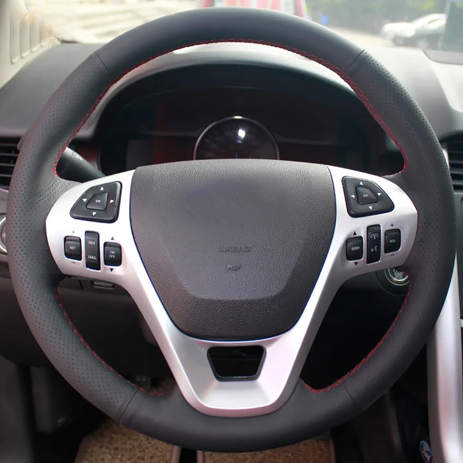 ๐ Suitable Only:Car models ONLY for reference because of the different Auto configuration, if not the same steering wheel, please send us your steering wheel photo: For Ford Taurus 2013 2014 2015 2016 / Ford Explorer 2011 2012 2013 2014 2015 / Ford Edge 2011 2012 2013 2014 Accessories ๐ Material Type:Top quality of cowhide(full grain leather)or Suede or PU Carbon Fiber (contact us if you need ) ๐ Installation: Hand sewing the Steering wheel cover OVER your steering wheel! ๐*Packing*1 x Steering Wheel Cover *1 x Needle & Thread *1 x Double Sided Tape *1 x Yellow Small Blade *1 x Installation Instruction Paper