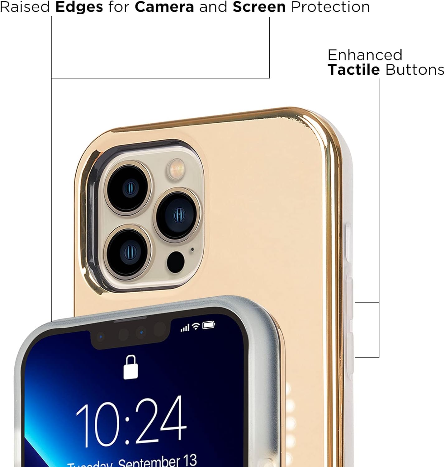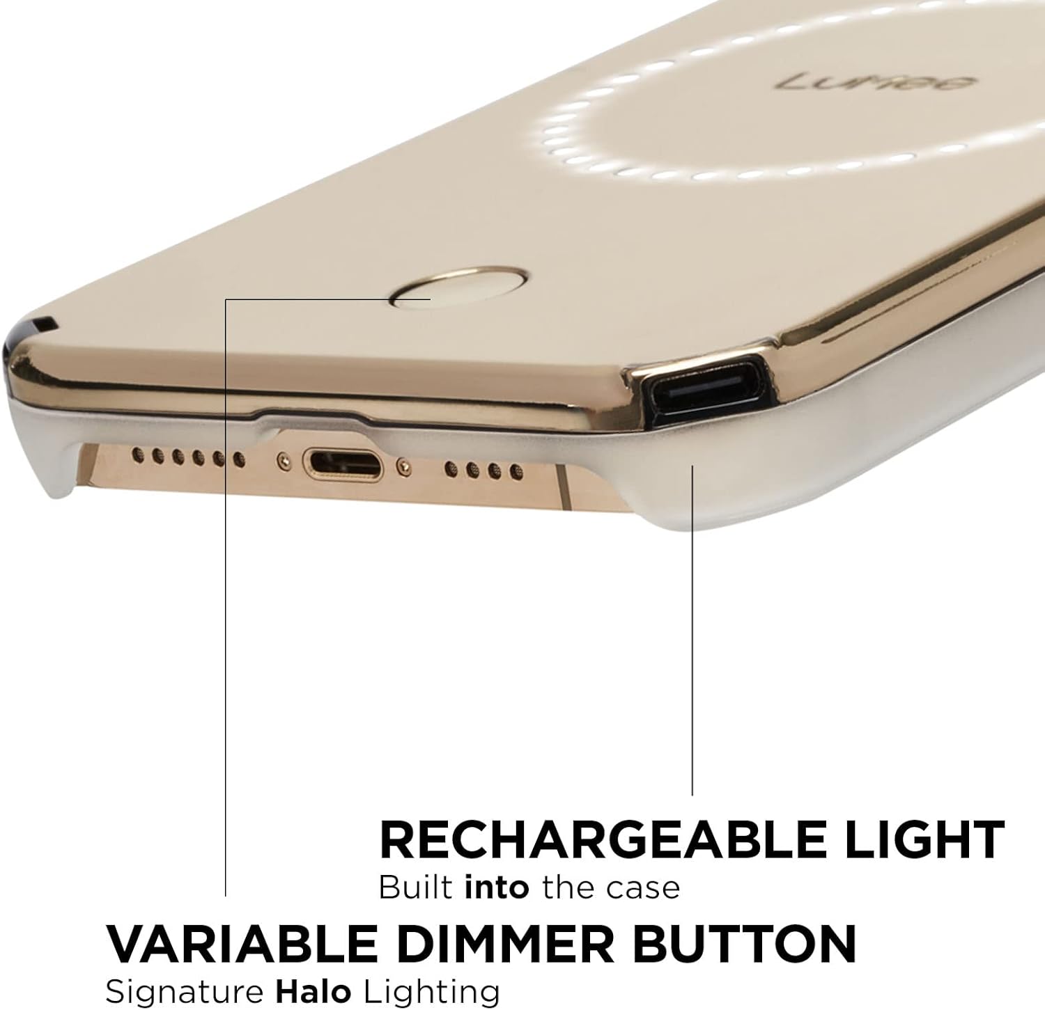 As good as gold! The new Halo Gold case features an eye-catching metallic gold finish so you can flex on all your friends. The signature Halo lighting creates bright, high-quality light on the front and back. The LuMee Halo makes you the focus. Simple and easy to use, it is a mobile lighting studio at your fingertips. Plus, it is strong and influencer approved! LuMee: Life Brighter #LightingIsEverything Includes: Wrist Strap and USB Charging Cable ✓ Compatible with iPhone 12 Pro Max