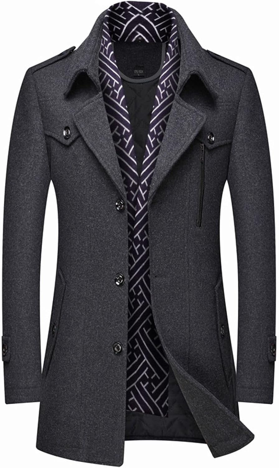 Lu's Chic Men's Long Sleeve Pea Coat Winter Top V Neck Turn Down Collar Warm Zip Fall Business Casual Fashion Button Up Pocket Slim Fit Wool Jackets & CoatsSizeTag size L fits US size S, Tag size 2XL fits US size M, Tag size 4XL fits US size L