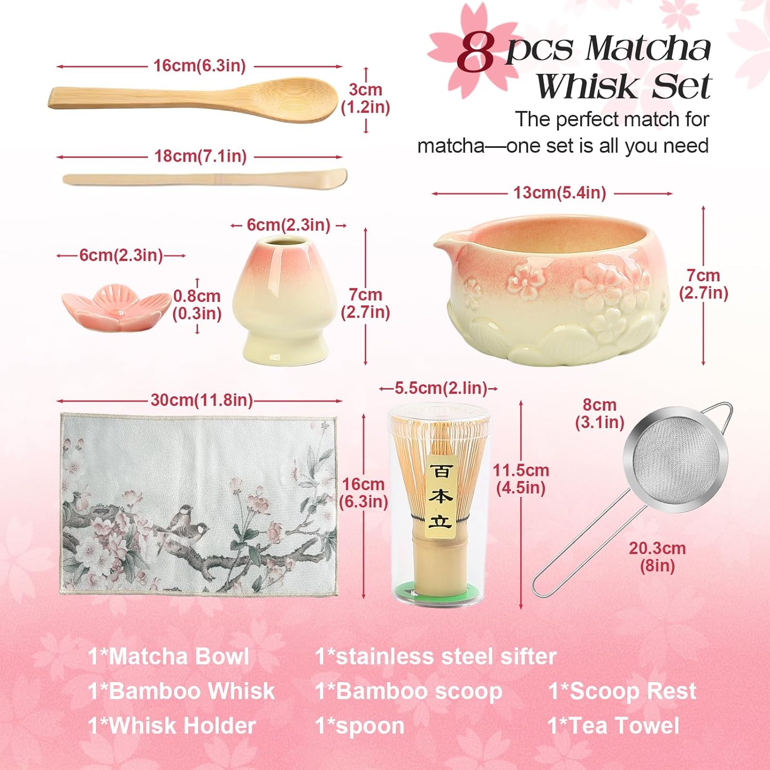| Included Components | Bamboo Matcha Whisk+Ceramic Whisk Holder, Bamboo Scoop*2+Scoop Rest, Ceramic Matcha Bowl, Stainless Steel Sifter, Tea Towel |