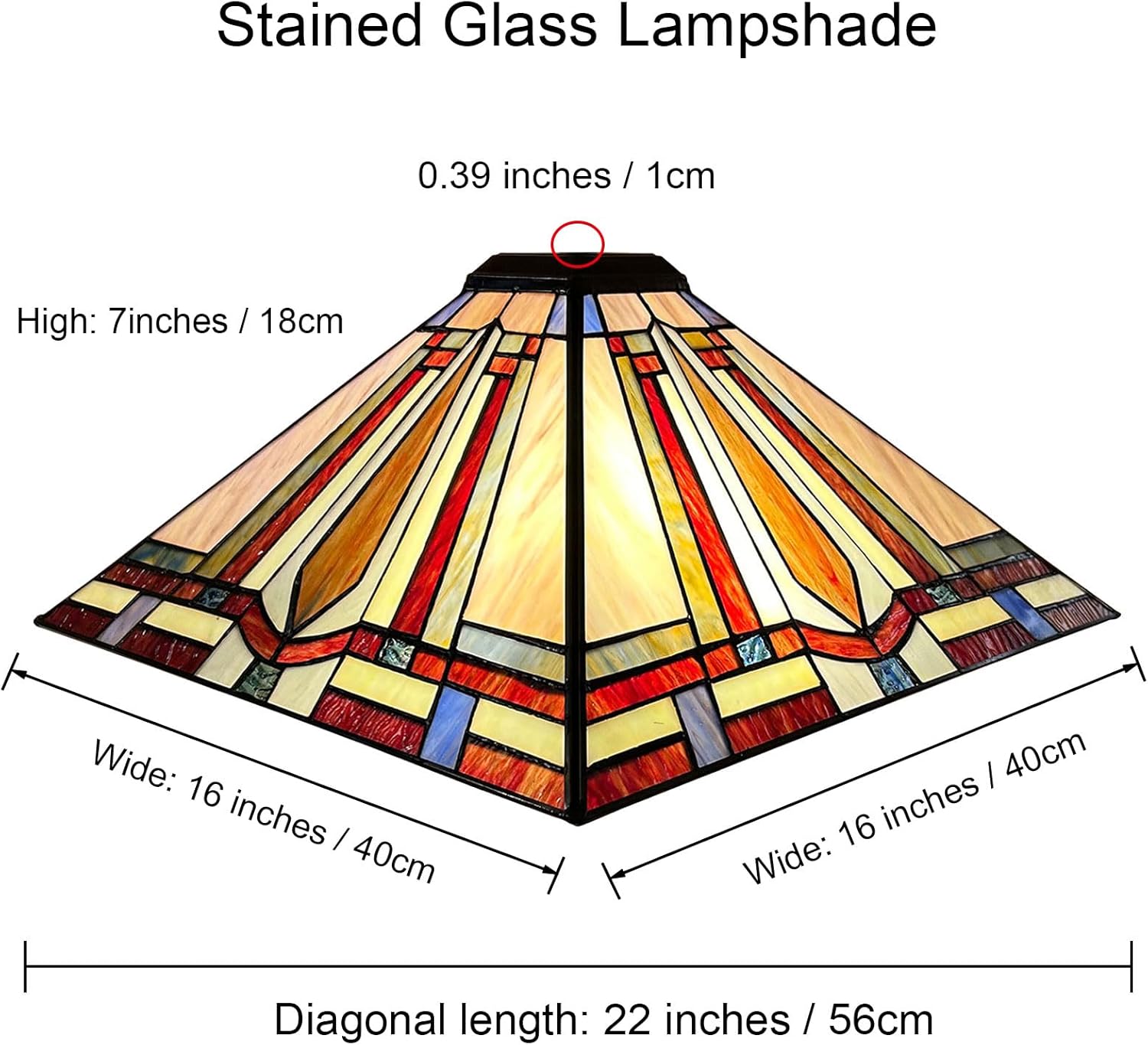 Mission Tiffany Style Stained Glass Lamp Shade Replacement Only 16X7 Inch Vintage Lampshades 1 Pcs Yellow Amber Light Cover for Table Lamp Floor Lamp Desk Reading Lights Study Room Lights Kitchen Lighting★ Shade Material: Stained Glass★ Shade Process: handmade★ Shade Colours: Yellow Orange Brown Blue Green Beige Amber ★ Shade W :16 inch (40cm); H: 9 inch (22cm)★ Shade weight: about 3.5 kg★ Package Size: 49cm*49cm*26cm★ Scope of application: living room, study room, bedroom, reading room, office, nightstand, dresser, dining room, balcony, hallway entrance ,corridor access, foyer, Bar, restaurant, hotel hall, Cottages, farmhouses Villa Dormitory, kindergarten Dormitory, nursery school etc.★ Style: Tiffany ,Retro, Victorian, Vintage, Mediterranean★ Package : Embedded Styrofoam safety packaging. Strong impact resistance, anti-pressure, anti-vibration, moisture-proof.