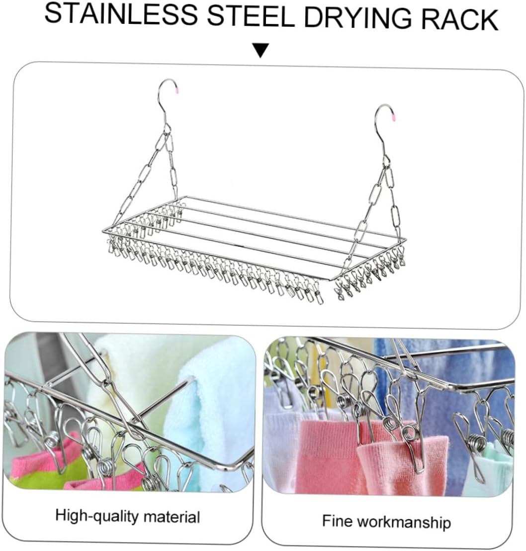 Package Include 1 x Drying Rack Features - Color: Silver laundry drying rack. - Material: Stainless steel clothes drying rack heavy duty. -Product Info:Balcony sock drying rack - Adjustable design for easy storage and space-saving clothing racks for drying clothes. - It has large storage capacity, so can meet your daily needs clothes dry rack. - Because of this special design, it prevents from falling off drying racks. - Suitable for inside or outside use, this hanging rack can be utilized in the laundry room, or on your balcony clothes drying racks. - It is made of stainless steel, which is and anti-rust, sturdy and not easy to be out of dry rack.Goods Informationclothing dry is perfect for hanging socks, towels, etc.pant hanger This item is a multifunctional sock hanger, manufactured with premium stainless steel material, so that it can serve you for many years.clothes dry rack material can ensure its durability and practicability