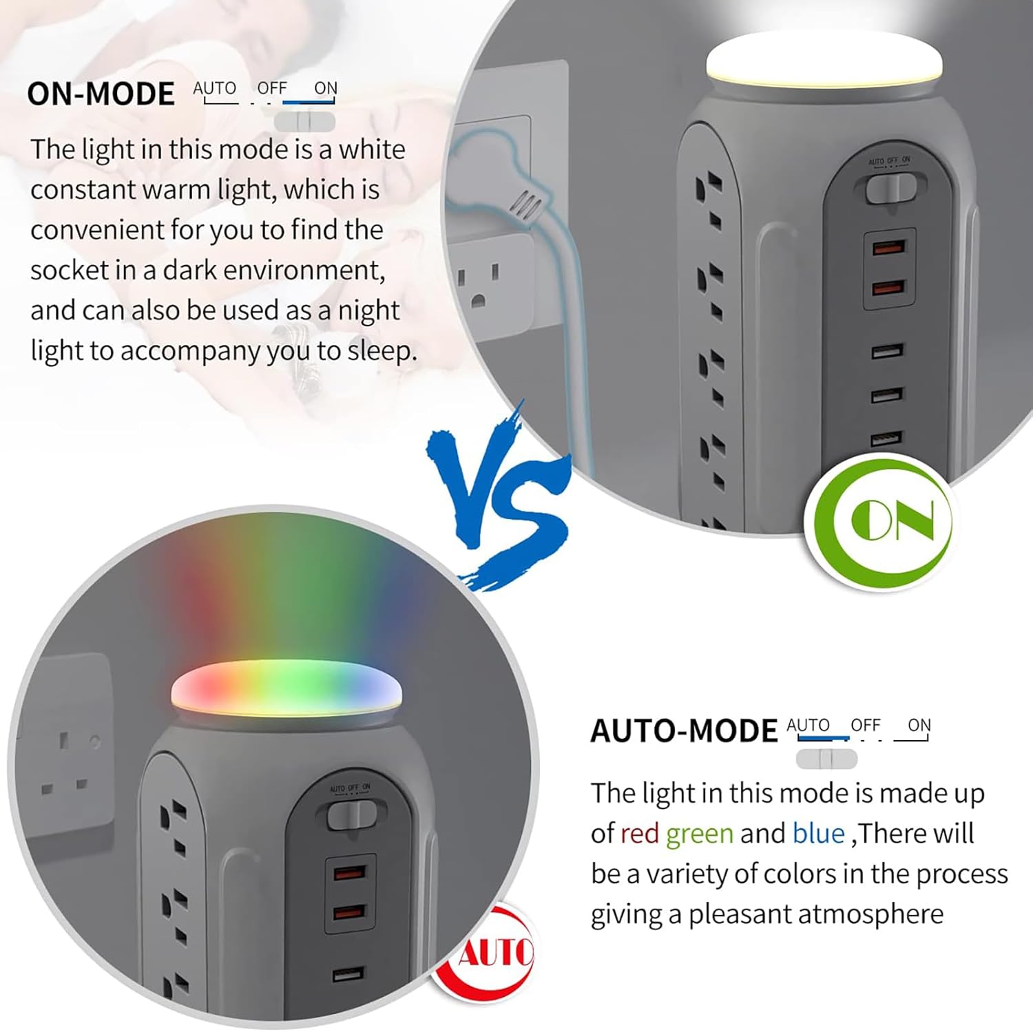 Specifications:Model: 01-US-15A6UInterface: 15-AC Outlets + 6-USB PortsTechnical Parameters: 10A-125V 50/60HZRated Power: 1875WSurge Protection: 900JUSB Output: 5V=4.2A (2.4A Max Each Port)Power Cord Length: 6.5FT/2MFeatures:Power switch with overload-protection, prevent accidents caused by overload use.Built with Surge Protective function, keep device safe during thunderstorms.Integration of power strip and USB charge, fit for most household appliances and 5V digital products.2.4 amps max each port or 4.2 amps overall of the USB charge. Detects and recognizes your device automatically to deliver its possibly fastest charging.Built-in fire-resistance shell, great heat dissipation copper wire, special phosphor copper conductor, overload protector, over current, over-voltage, short circuit, over charging, over heat protection, all these will guarantee the security of your devices and you.How to Use:Plug the power strip into a wall socket.Turn on the power switch and connect your electric appliance and electric devices to the AC outlets and USB ports.Unplug your device from the power strip when fully charged or not in use. Switch off the surge protector and unplug it from the wall socket.