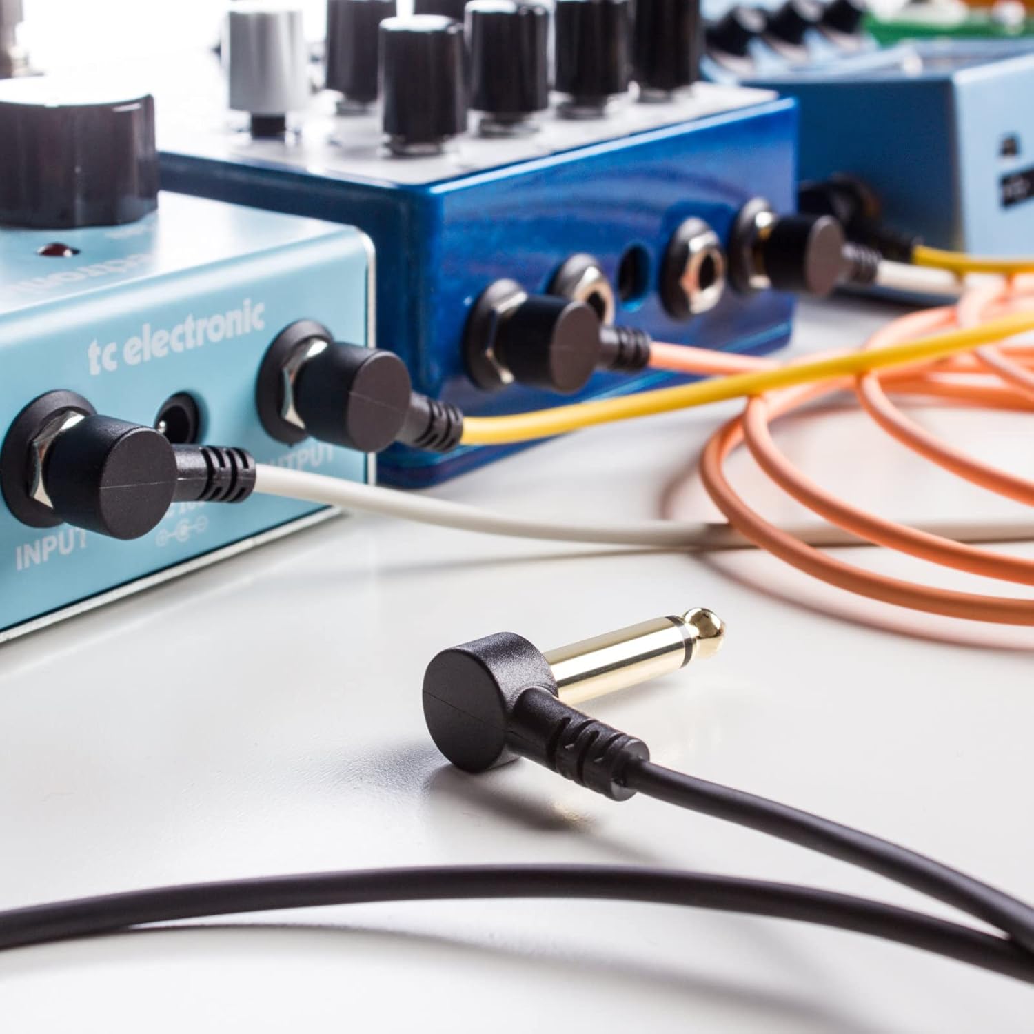 Candycords by myVolts: Sweet colours, precise design.Unique family of coloured curly audio cables. Tangle-free, hard-wearing and expertly finished.myVolts Candycords audio cables were developed in collaboration with musicians in real scenarios to fulfill their needs and solve their problems. We've worked hard to make them the best cables out there.The ConnectorThe Candycords feature high quality gold plated 3.5mm jack connectors as well as 6.35mm in straight or right angle configurations.These have a clean yet robust design.You can hear a solid 'snap-crunch' when you plug them in, but that is no gimmick, it's the sound of a well made connector fitting well into its slot.The CableWe designed the cables using a special thermoplastic rubber that makes them hardwearing while comfortable to handle. With this, we also solved the problem of tangled cables. Our Candycords are virtually untangleable.Cable Specification:1st connector: flat mono 6.35mm jack angled2nd connector: flat mono 6.35mm jack angledcable shape: straightcables length: 13.75''cables colours: Powder Grey, Sunset Peach, Marshmallow Pink, Jellybean Purple, Mint Green, Pineapple Yellow, Liquorice Blackcables in pack: 7 cables
