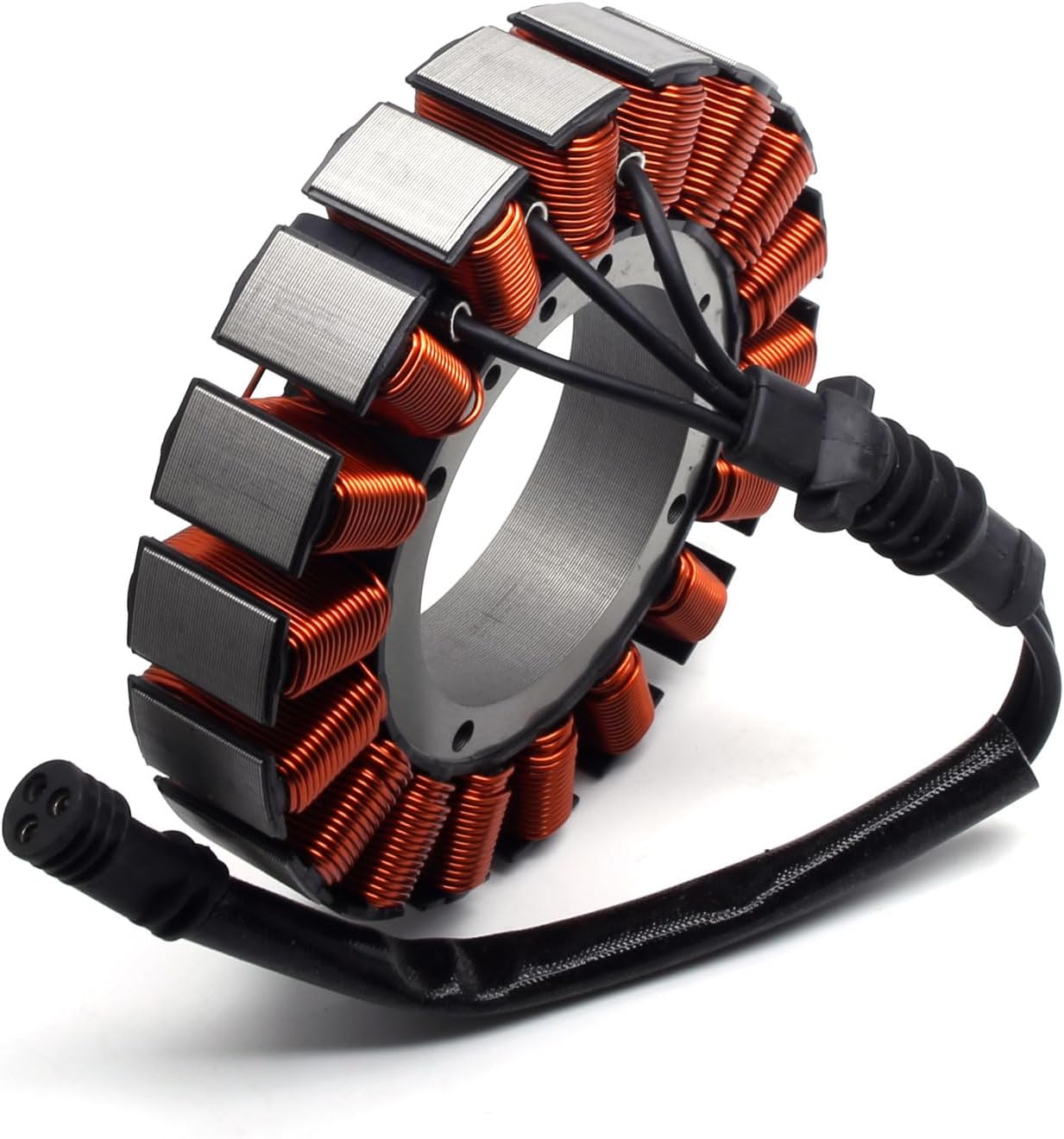 Specification: Material: Machined from High Quality Copper Windings and Stainless Steel Construction Replace OEM Part Number: 29987-06 29987-06A 29987-06B 29987-06D Stator Weight: 3.53lb Voltage: DC 12V Amperage: 50A Number of wires : 3 Number of plugs : 1 Number of pins : 3 Package Includes: 1 Piece x Moorcycle Stator Instructions not Included Features: Direct installation, plug and play, fast and convenient. Highest grade copper windings, resistant to 200 degrees Celsius. Offers the durability required to enjoy a peaceful ride. Our stators offers the same characteristics of the OEM stators for a fast and easy replacement at a fraction of the OEM costs. Fitment: 2006-2016 Electra Glide 2006-2016 Road Glide 2006-2016 Road King 2006-2016 Street King 2009-2016 Tri Glide 2007-2013 CVO Ultra Classic Electra Glide More for detailed applicable models, please refer to the "vehicle fitment list". Notice(Before installing your new stator): Check the AC output of the stator Replace any burned or corroded connectors on stator and regulator/rectifier Check and repair any melted wiring Use hi-temp dielectric grease on all connectors MZS value the shopping experience and satisfaction of each customer, so we provides lifetime technical support. If your products have any problem or miss some accessories, please contact us by Clicking ”Ask Product Question” beside your order.