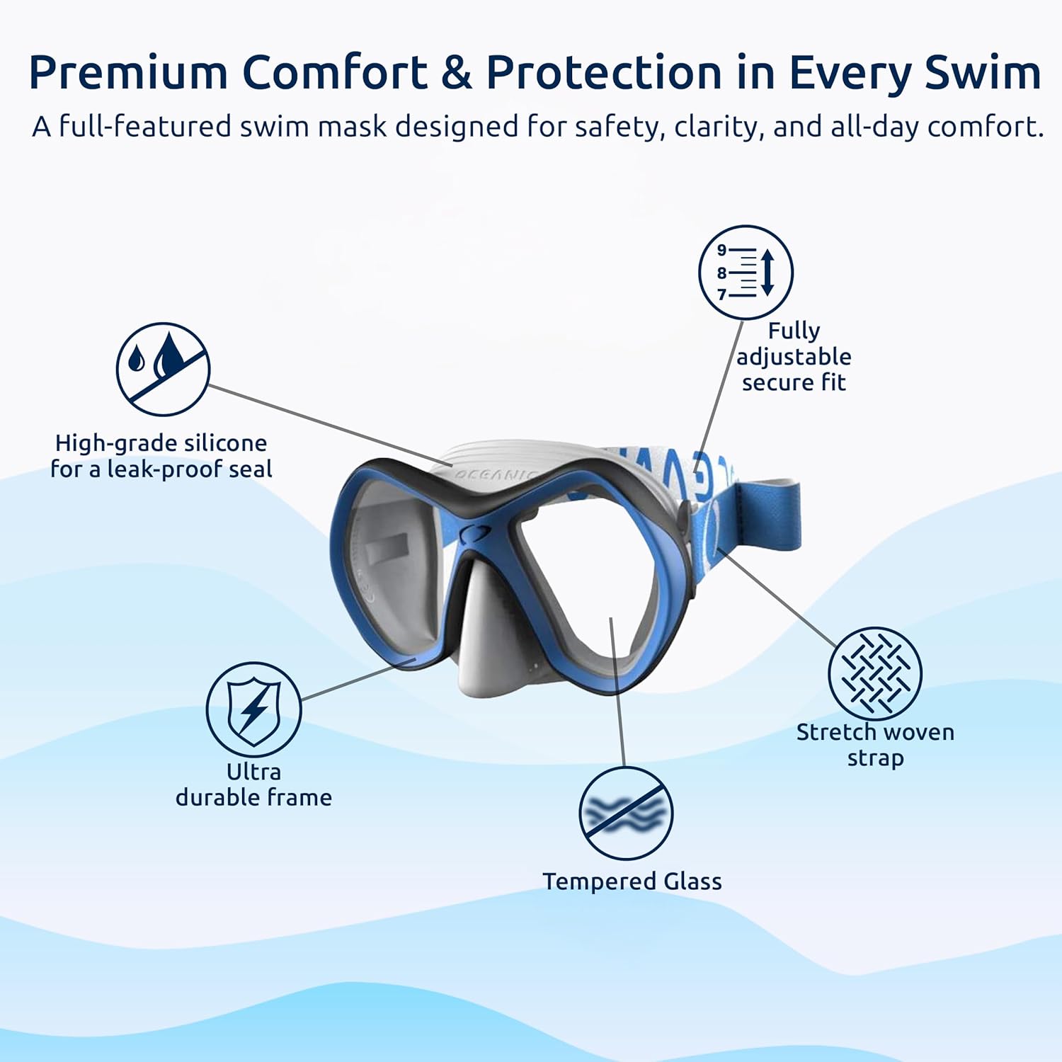 Give your child the confidence to explore the underwater world with the Oceanic Kids Snorkel Mask —a comfortable kids swimming mask with nose cover designed for ages 6–14. Unlike standard goggles, this kids snorkel mask provides full eye and nose coverage, helping kids feel calmer when they don’t like water getting in their nose. The soft, high-grade silicone seal creates a gentle, leak-resistant fit that stays comfortable on smaller faces, while the stretch woven fabric strap adjusts quickly for a secure hold and is more hair-friendly than traditional rubber straps. For a clear view underwater, the durable tempered glass lens delivers a wide, crisp look and UV protection—perfect for swim lessons, pool days, vacations, and beach snorkeling. Built for real kid adventures, this kids swim mask is made to handle splashes, bumps, and repeated use so parents get fewer complaints and kids get more fun, more comfort, and more confidence every time they jump in.