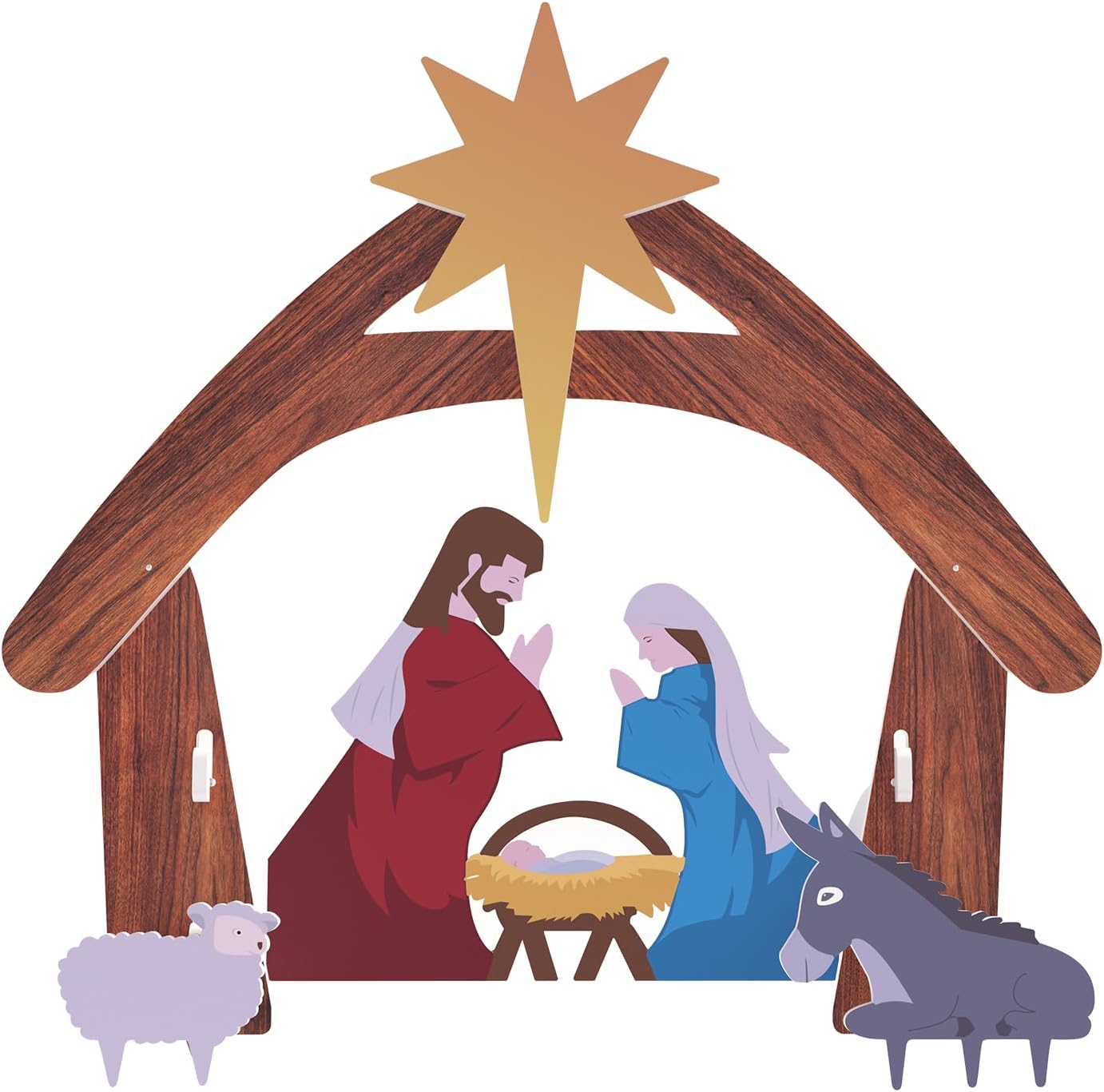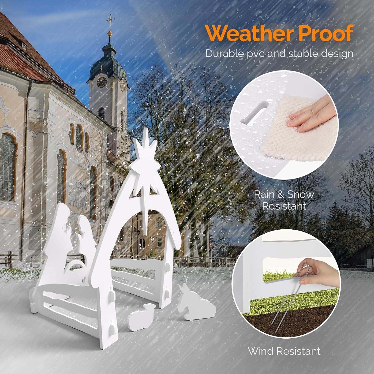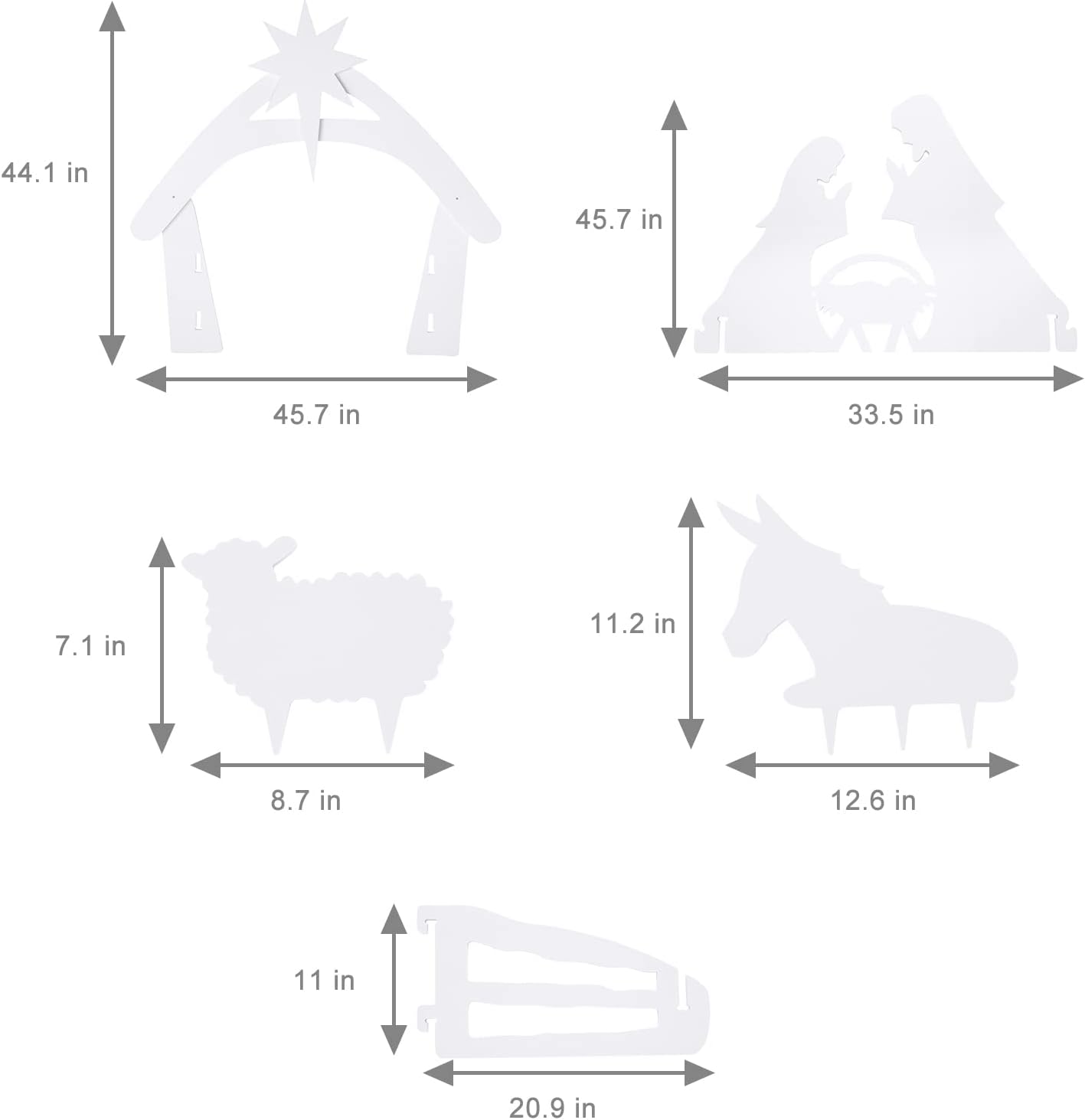 Outdoor Nativity Scene Christmas Nativity Decoration, Religious Nativity Yard Sign Holy Family Nativity Scene Jesus Christmas Decorations for Lawn Yard Garden Xmas Holiday Home DecorSpecification:1. Material: PVC2. Color: Natural3. Size: (45.67 x 20.87 x 44.09)" / (116 x 53 x 112)cm(L x W x H)Feature:1. Create a warm holiday atmosphere2. Rugged and durable3. Easy to install4. Can be used repeatedly Package Included:1PC Outdoor Nativity SceneNote:1. Manual measurement, The size will have a 1-3cm error, subject to the actual item.2. Due to differences in light and screen, the color of the goods may be slightly different from the picture.