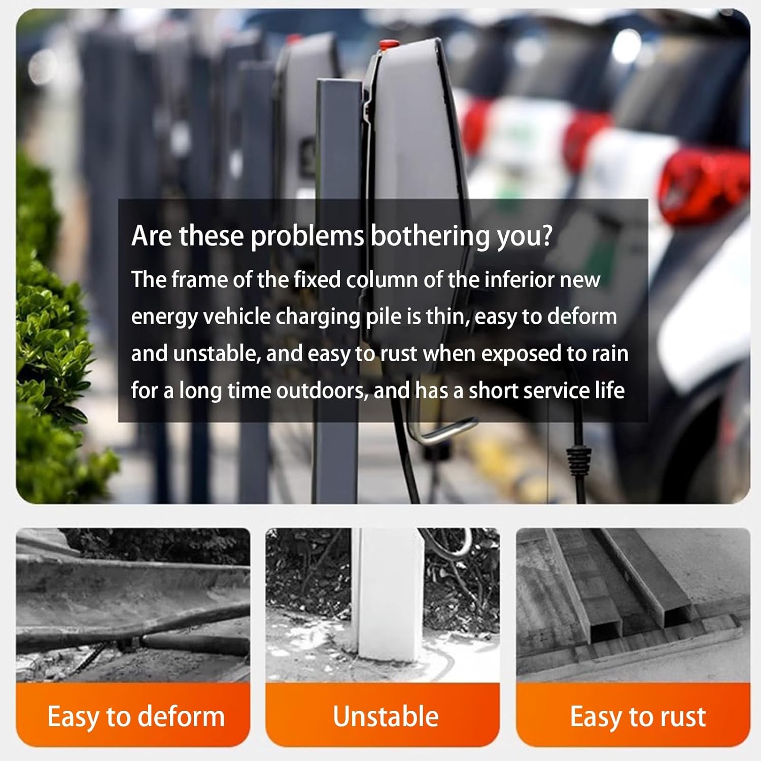 This new energy charging column adopts an integrated column structure, does not require splicing, is easy to install and has a simple appearance. It is equipped with a special back panel and can adapt to 90% of charger brands to meet various charging needs. The main body is made of high-quality cold-rolled steel, electrostatic spraying process, waterproof and rust-proof, and provides a power cord hook for easy cable organization. It is suitable for private garages, companies and public commercial parking lots. It is easy to install and has complete accessories. It is firm and stable after installation, providing reliable support for charging piles. Parameters Name: Electric vehicle charging bracket Size: 150cm/59in Material: 201 stainless steel Style: Simple Installation method: vertical ground installation Application: community, shopping malls, parking lots, factories, etc.