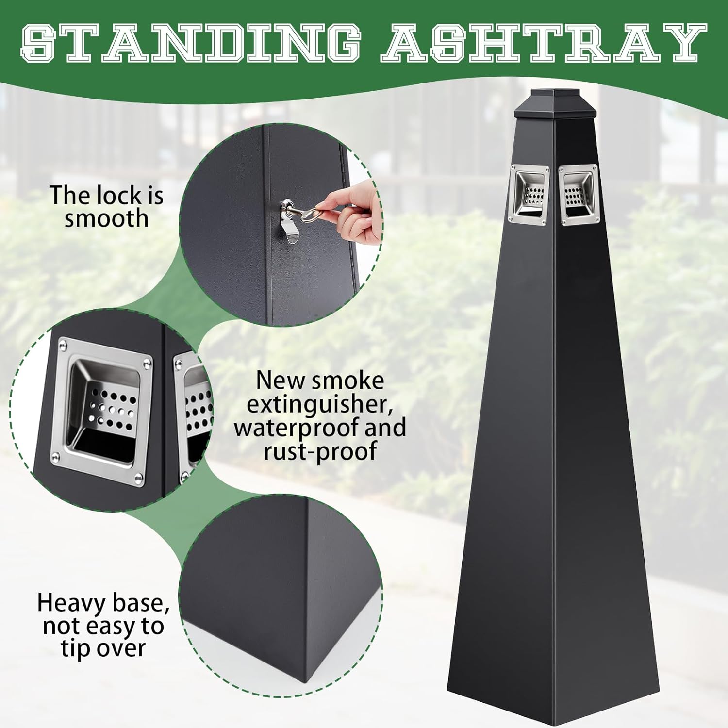 Features: The standing outdoor trash can's elegant black metallic finish is designed to blend seamlessly into various environments, adding a touch of sophistication to any setting from contemporary patios to classic boardwalks. Crafted for resilience, this standing trash bin's robust structure endures fluctuations in temperature and humidity, making it an apt choice for diverse climatic conditions while retaining its refined appearance. Specifications: Material: metal Color: black baking paint Size: about 38 inches in height Package includes: 1 x Steel trash can receptacle outdoor 1 x Key 2 x Screws Notes: Manual measurement, please allow slight errors on size. The color may exist a slight difference due to different screen displays