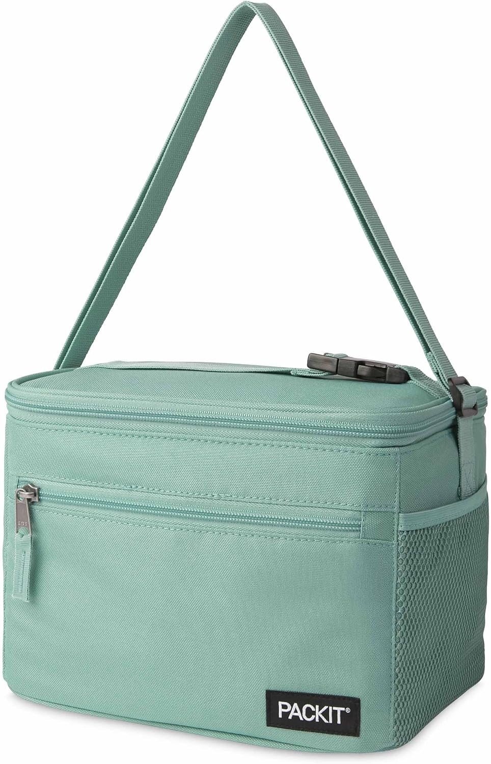 PackIt® Freezable Essential Cooler, Sage, Built with ECOFREEZE® Technology, Fully Freezable, Collapsible, Reusable, With Removable Crossbody Strap, Top Clip Handle, Designed for Fresh Office or Work Lunches