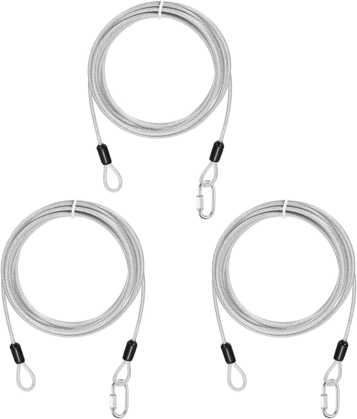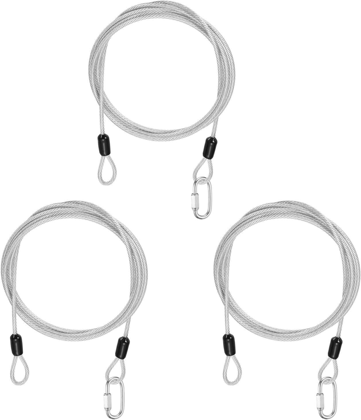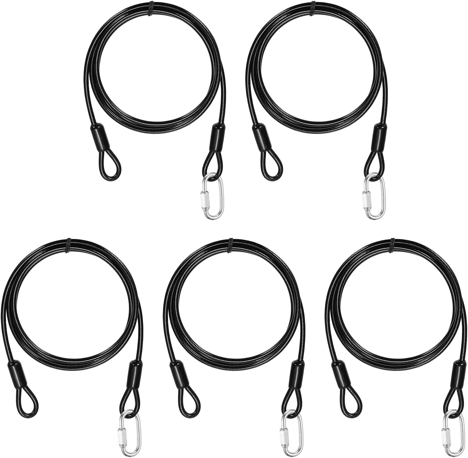 Reasons for selection:Locking cables use robust 7×7-strand 304 stainless steel wires, with excellent corrosion and rust resistance, high strength and toughness; the cable wires are fully sealed in a smooth vinyl coating that avoids surface scratches on both the cable and contact surfaces, enhances waterproofing and long-term durability, and keeps the cables flexible for easy bending and twisting.Measurement:Color: Clear; Material: Vinyl, 304 Stainless Steel; Cable Length: 3000mm / 118.1 inch / 9.8 ft; Cable Wire Dia.: 5mm / 3/16 inch; Max Load Capacity: 60kg / 132lb; Chain Connector Wire Dia: 5mm / 3/16 inch; Chain Connector Opening Size: 6.5mm / 1/4 inch; Chain Connector Total Size: 51mm x 23mm / 2.01 x 0.91 inch (L x W); Package: 5 Pcs x Security Cables, 5 Pcs x Chain ConnectorsSuitable for:Security steel cables serve as versatile locking accessories, suitable for securing luggage, bicycles, doors, and similar items. Travel security cable lock suitable for a wide range of lock types, including U-locks, padlocks, and disc locks. These steel cables are also commonly used in scenarios like garden setups, clothing adjustments, cord pulling, pet leashes, picture hanging, and railing installations.Installation:The safety cable adopts a double-loop design, with ring-shaped structures integrated at both ends and a spacious link space. The 304 stainless steel chain quick links are designed to create permanent or temporary secure connections, perfect for fast connections between chains and ropes. The threaded end and hex nut design ensure a tight and secure connection.Kind tips:Do not use for lifting or pulling heavy objects, use only for safety ropes and hanging lightweight.Best used for load capacity under 50kg / 110lb.