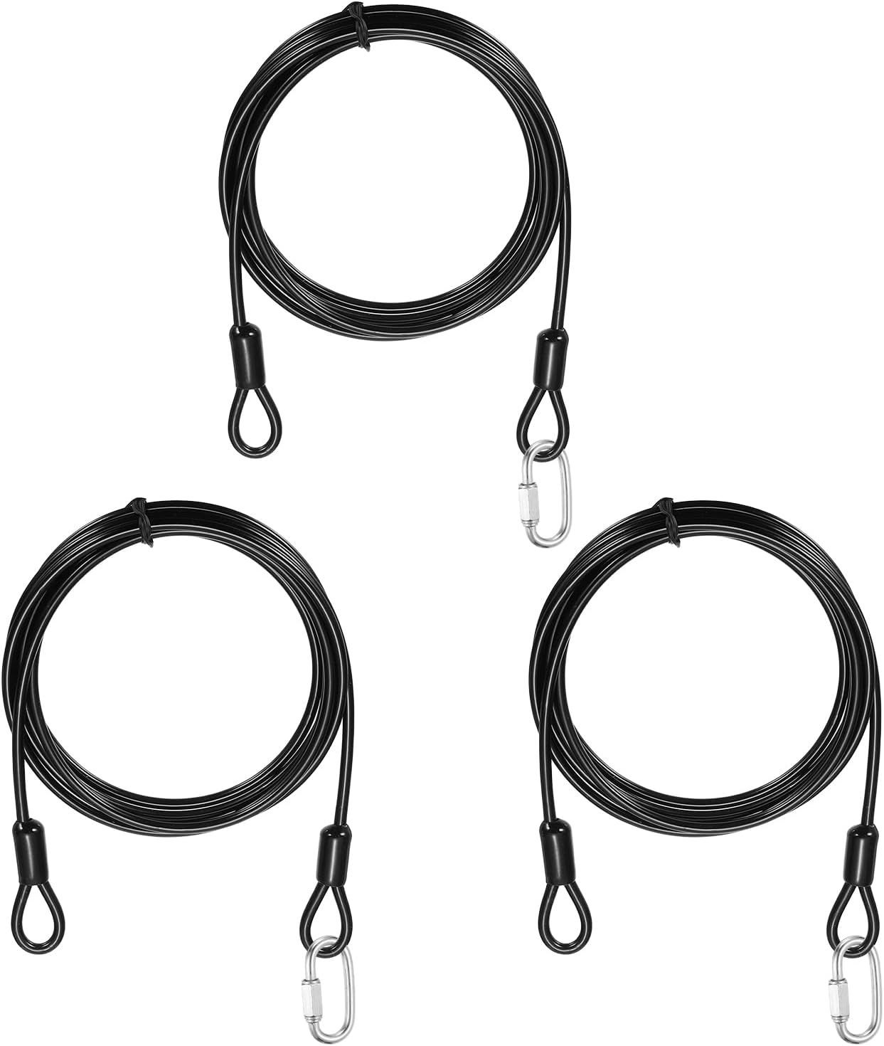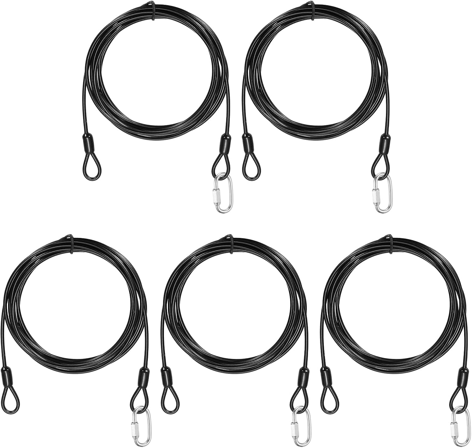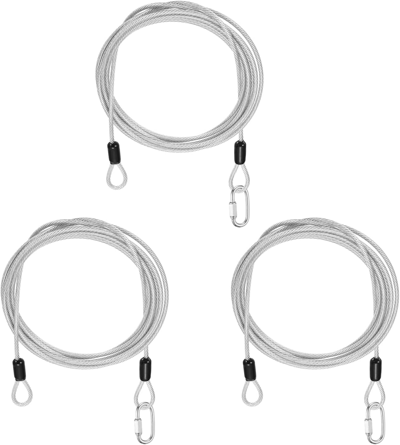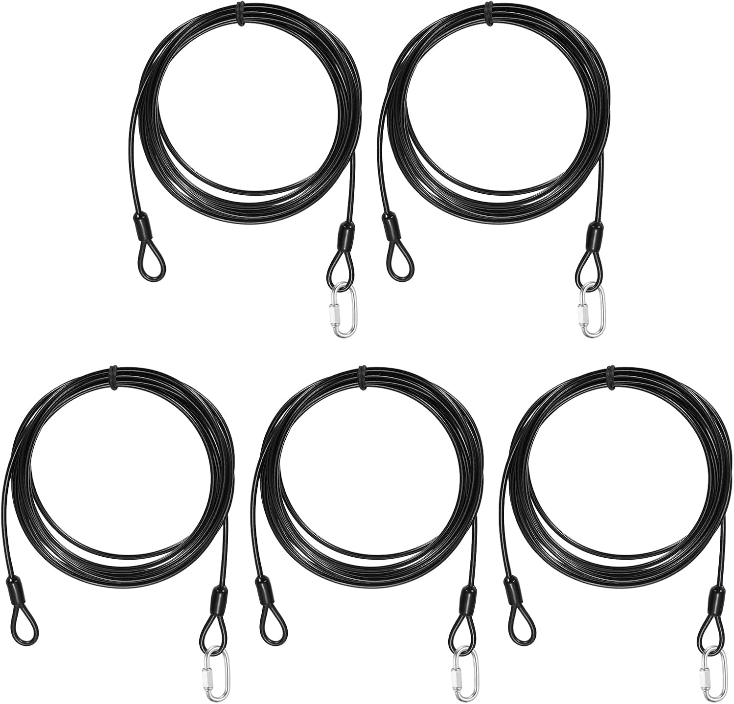 Reasons for selection:Locking cables use robust 7×7-strand 304 stainless steel wires, with excellent corrosion and rust resistance, high strength and toughness; the cable wires are fully sealed in a smooth vinyl coating that avoids surface scratches on both the cable and contact surfaces, enhances waterproofing and long-term durability, and keeps the cables flexible for easy bending and twisting.Measurement:Color: Clear; Material: Vinyl, 304 Stainless Steel; Cable Length: 3000mm / 118.1 inch / 9.8 ft; Cable Wire Dia.: 5mm / 3/16 inch; Max Load Capacity: 60kg / 132lb; Chain Connector Wire Dia: 5mm / 3/16 inch; Chain Connector Opening Size: 6.5mm / 1/4 inch; Chain Connector Total Size: 51mm x 23mm / 2.01 x 0.91 inch (L x W); Package: 5 Pcs x Security Cables, 5 Pcs x Chain ConnectorsSuitable for:Security steel cables serve as versatile locking accessories, suitable for securing luggage, bicycles, doors, and similar items. Travel security cable lock suitable for a wide range of lock types, including U-locks, padlocks, and disc locks. These steel cables are also commonly used in scenarios like garden setups, clothing adjustments, cord pulling, pet leashes, picture hanging, and railing installations.Installation:The safety cable adopts a double-loop design, with ring-shaped structures integrated at both ends and a spacious link space. The 304 stainless steel chain quick links are designed to create permanent or temporary secure connections, perfect for fast connections between chains and ropes. The threaded end and hex nut design ensure a tight and secure connection.Kind tips:Do not use for lifting or pulling heavy objects, use only for safety ropes and hanging lightweight.Best used for load capacity under 50kg / 110lb.