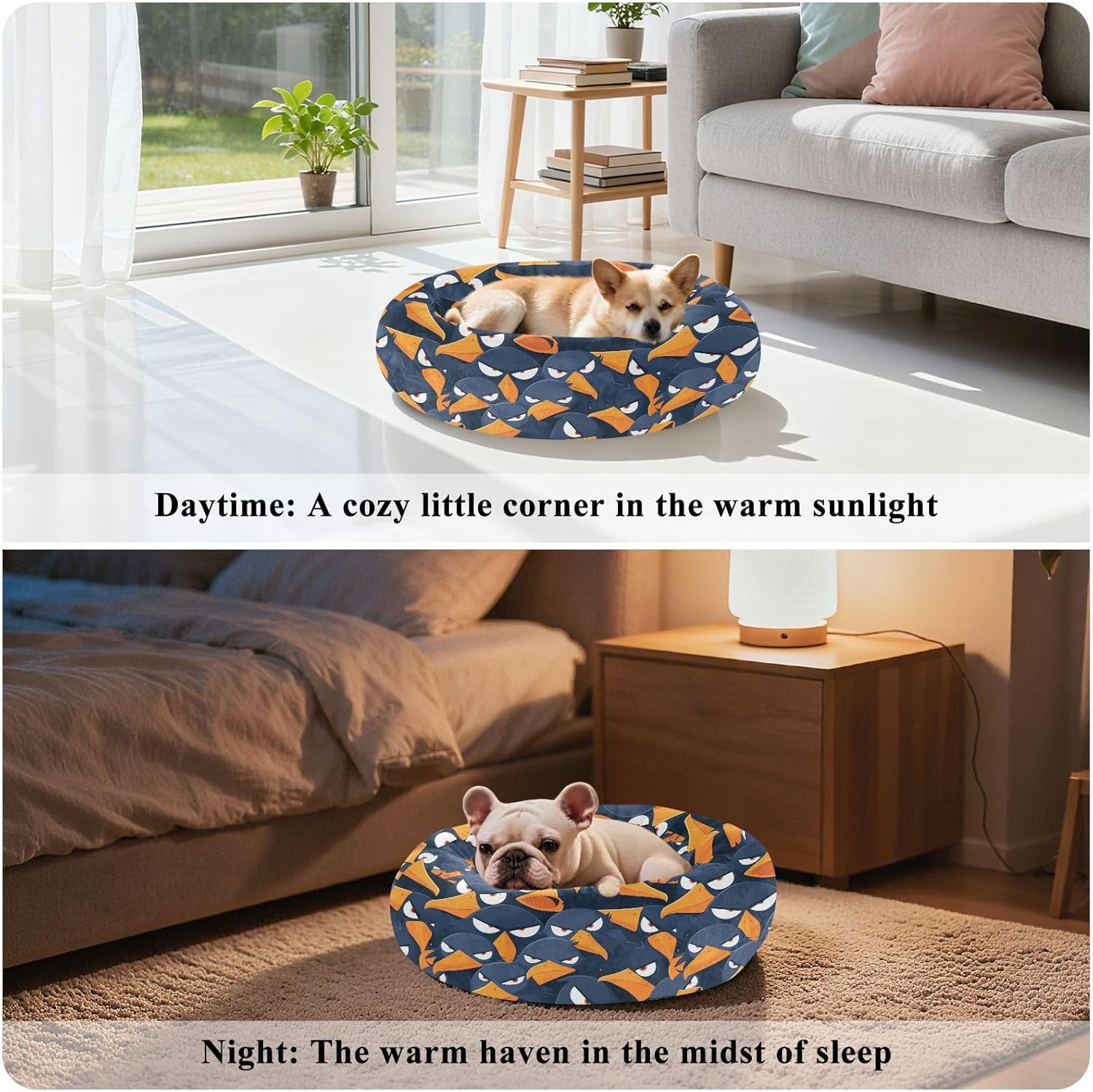 Material: Polyester + Filled Fiber + Drip Plastic. Our Cat Pillow Bed features a donut-shaped appearance design and is filled with silk-like cotton inside. It has excellent elasticity and fluffiness, providing comfortable support for pets and relieving joint pressure.Product Design: The overall shape is circular with raised edges, allowing your dog and cat to curl up for fun. Cat Pillow Bed provides support for the head and neck, promoting a sense of security without worry.Lightweight And Portable: This comfortable bed is light in weight, making it convenient for travel. It is very convenient for transportation and can be easily carried in the car. This Cat Pillow Bed can keep your pet comfortable when camping and traveling outdoors.Easy To Care: Can be hand-washed or machine-washed. A machine-washable Cat Pillow Bed makes it easier for your pet to stay in a comfortable and clean sleeping space.