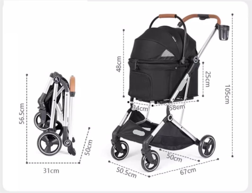 Walk within sight: It will be easier to keep a close eye on your pet, and with the convenience of zipping up and leaving, our pet stroller is perfect for a nice day.Product name: Dog Stroller/ Cat Stroller/Pet Stroller Frame Material:aluminum alloy framefolded size: 52*31*60cmCart unfolded size: 50*67*105cmLoad capacity: 20kg/44lbsBasket separation: YesCockpit size: 48*34*58cmPush handle height: 105cmNet weight: 6.9kg/12lbsPacking List: 1 * Pet Stroller Note: Only pet strollers are sold, pets and other items are not includedVisit almost any public place with your pet: Provide comfort for your pet in rainy and cold weather.Function switching can be done in minutes: If you have any questions about our pet stroller, please feel free to contact us.
