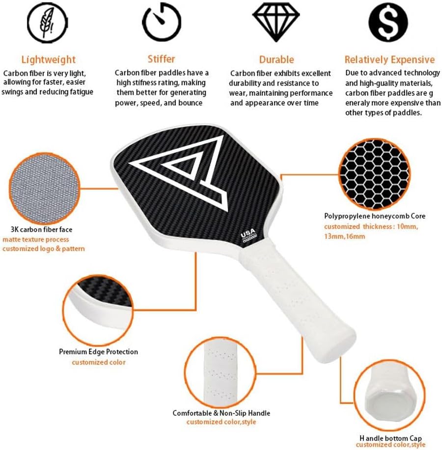 Introducing the 3K Imperium Pickleball Paddle – Your Game, Elevated! The 3K Imperium is the pinnacle of pickleball innovation, meticulously crafted with a 3K carbon fiber face and a robust 16mm thickness for unparalleled power and durability. The thermoformed core ensures optimal performance, providing a lightweight yet sturdy foundation suitable for players of all skill levels. Designed with precision, the 5.5-inch grip length offers a comfortable hold, empowering beginners and professionals alike with precise control on every swing. The integrated edge guard adds an extra layer of protection, making the 3K Imperium your reliable companion for intense rallies and prolonged gameplay. Whether you're a novice eager to enhance your skills or a seasoned pro seeking the perfect blend of power and finesse, the 3K Imperium caters to all skill levels. Elevate your pickleball experience with a paddle that redefines the standards – the 3K Imperium, where excellence meets every swing. Order now and take your game to new heights!